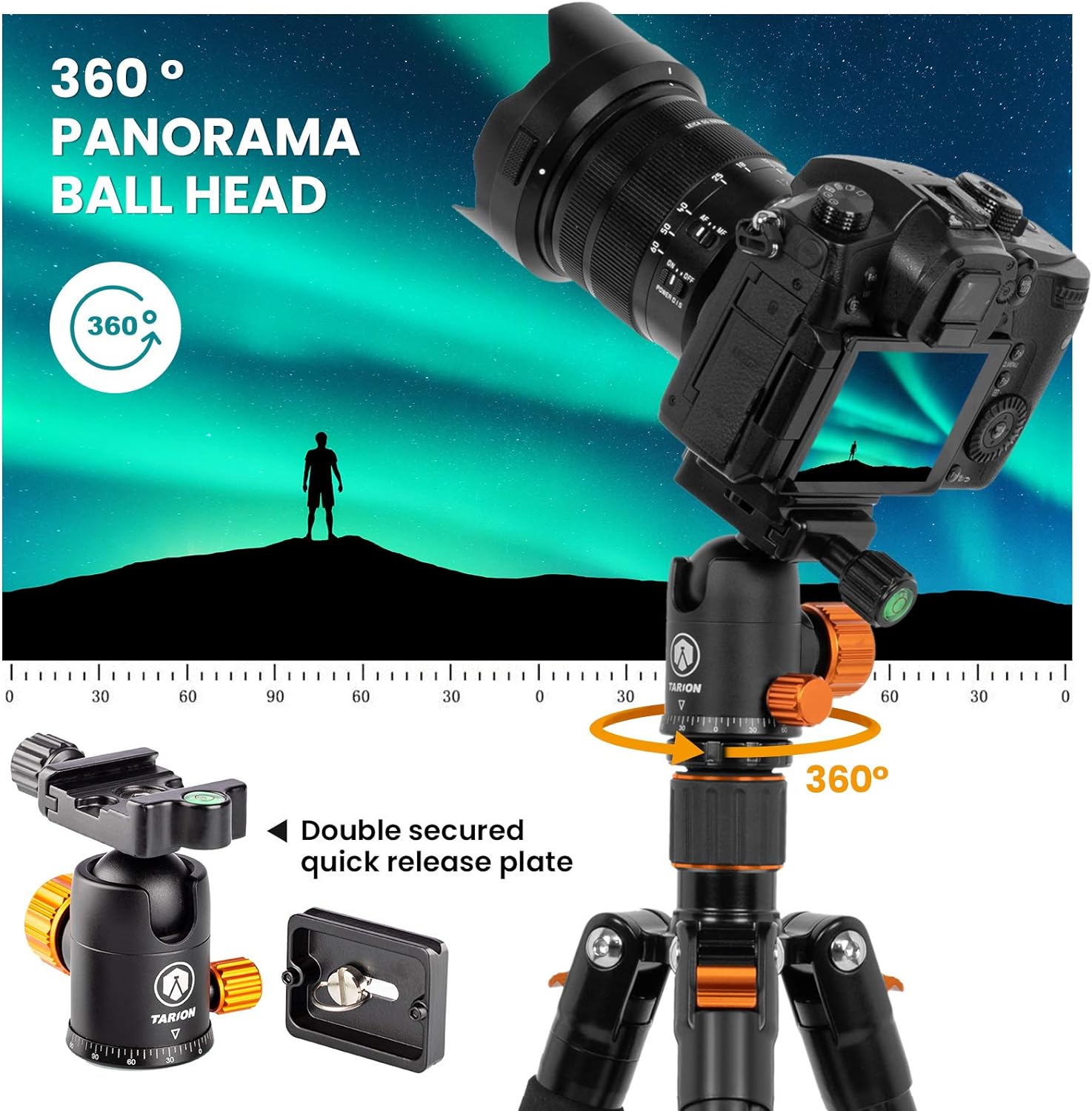 - Mit 360° Panorama-Kugelkopf und doppelten gesicherten Schnellwechselplatte.