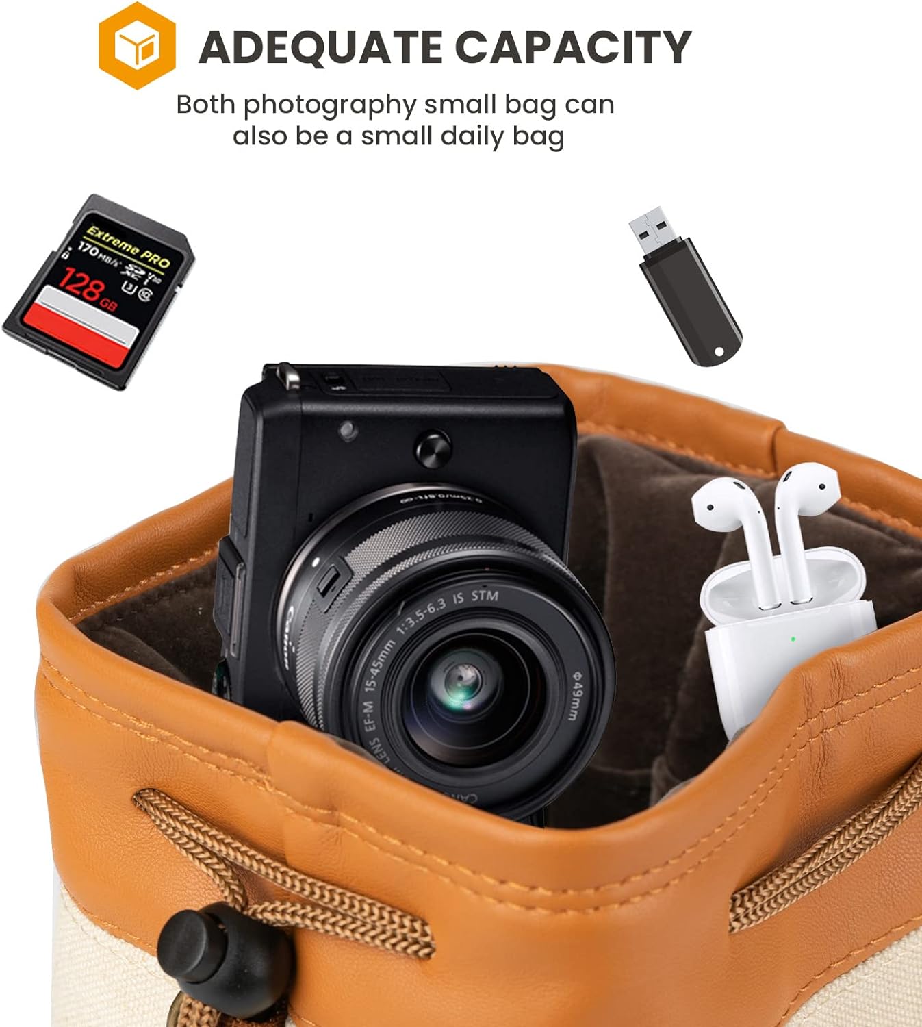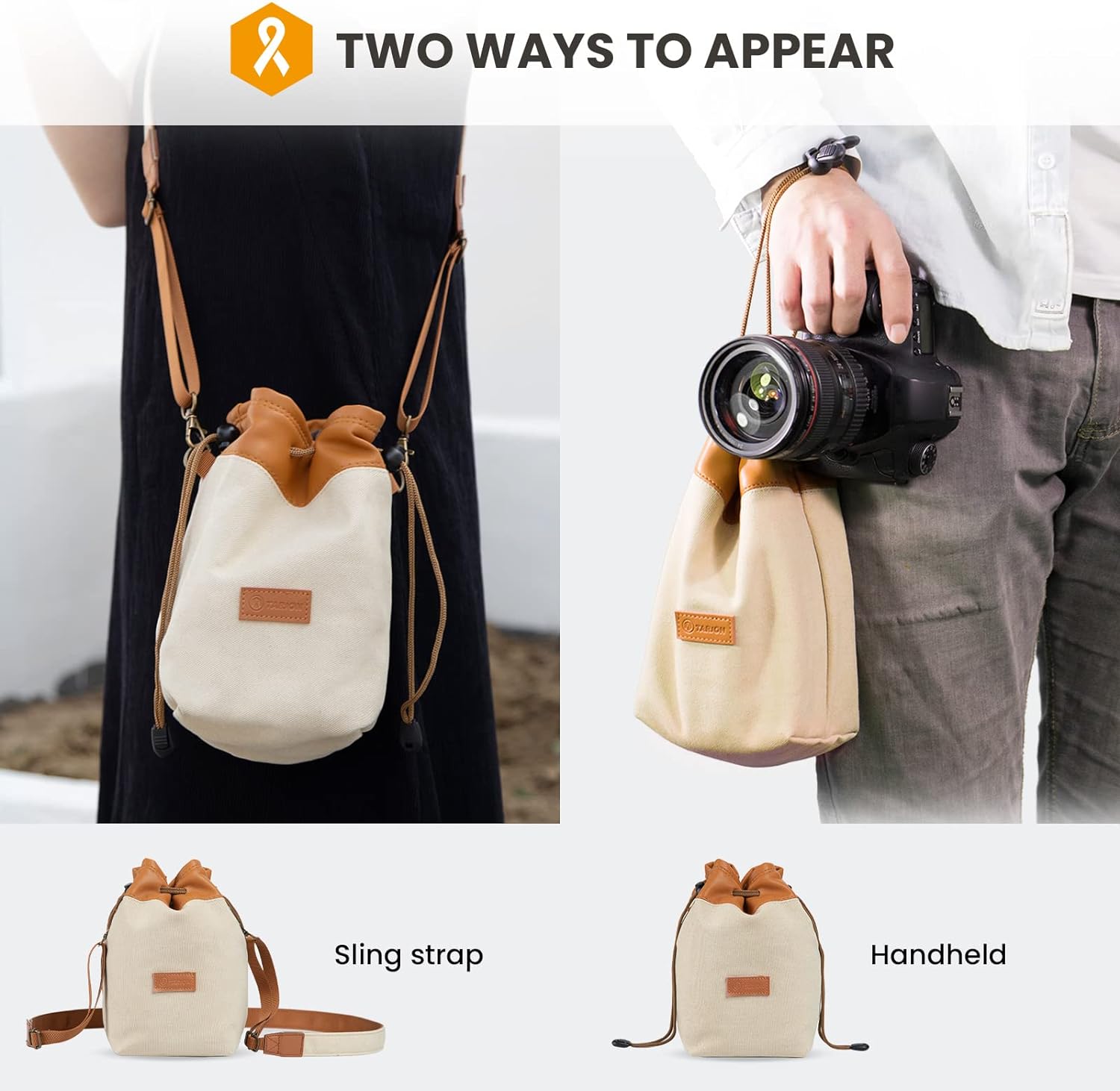 - 【Praktisches Kordelzug-Design】Das Kordelzug-Design ermöglicht einen einfachen und bequemen Zugriff. Dieses Design bietet auch einen Rundumschutz für Ihr Objektiv und Ihre Kamera.