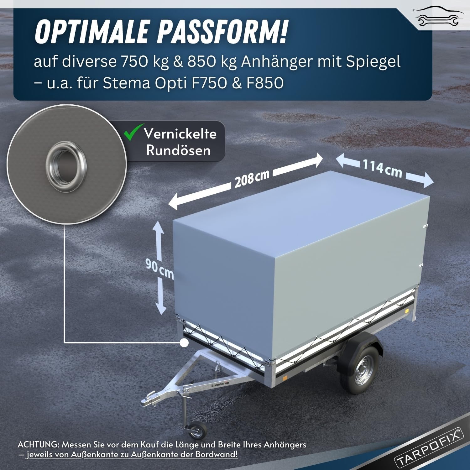 - ✔ UNIVERSELL PASSEND - die Hängerabdeckung passt auf diverse 500kg, 750kg & 850kg KFZ Autohänger der Hersteller Stema, Böckmann TPV, Pongratz, Brenderup sowie viele weitere Hänger mit Kastenaussenmass von 208x114cm!