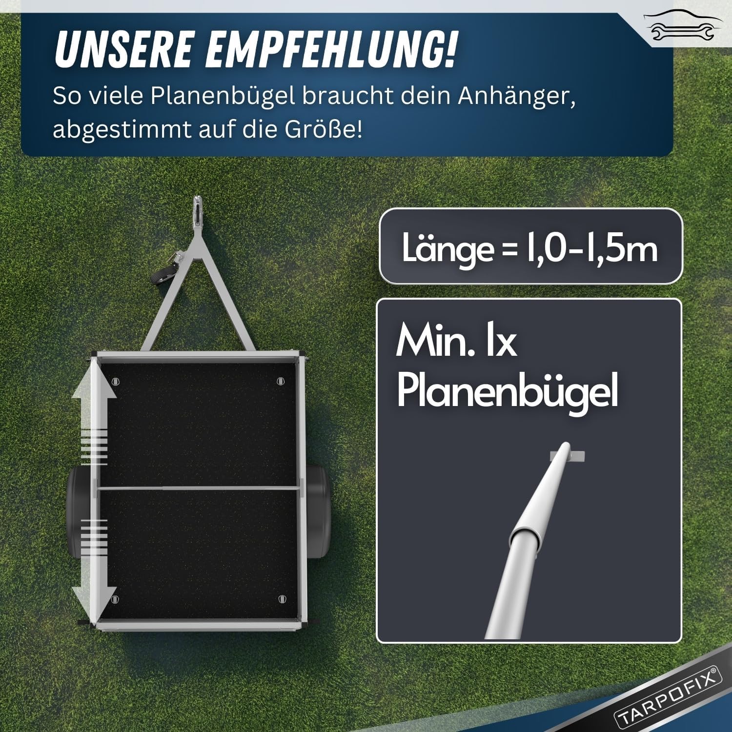 - ✔ IDEAL PASSEND - Der Planen Bügel ist flexibel einstellbar - die Hängerabdeckung passt ideal auf leichte Stema DDR Autohänger der Serie HP IFA sowie auf diverse flache KFZ Autoanhänger bis 500 kg!