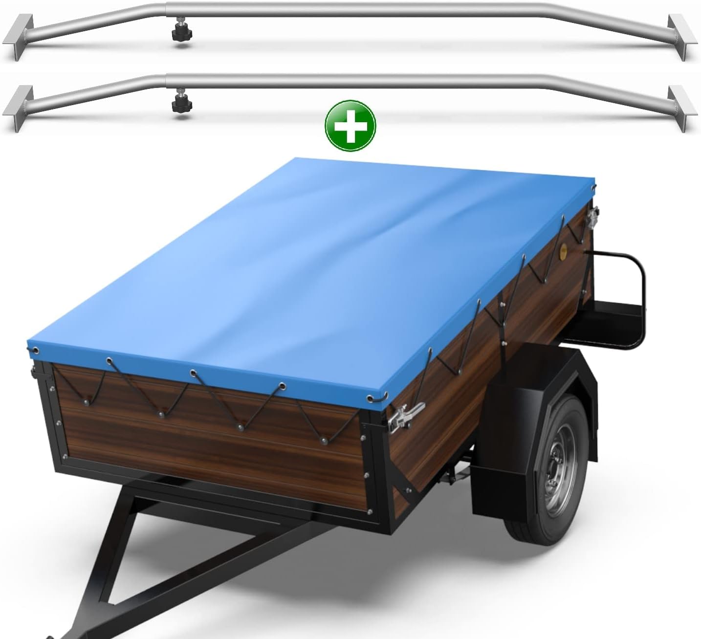Tarpofix® Anhängerplane Flachplane 170 x 110 x 7,5 cm + 2x Planenbügel (verstellbar 100-145 cm) - ra