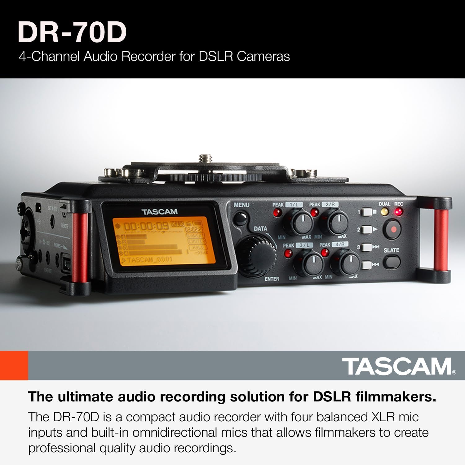 - Tracks auf dem DR-70D werden auf SD-Karte, SDHC- oder SDXC-Medien erfasst – unterstützt Karten bis zu 128 GB