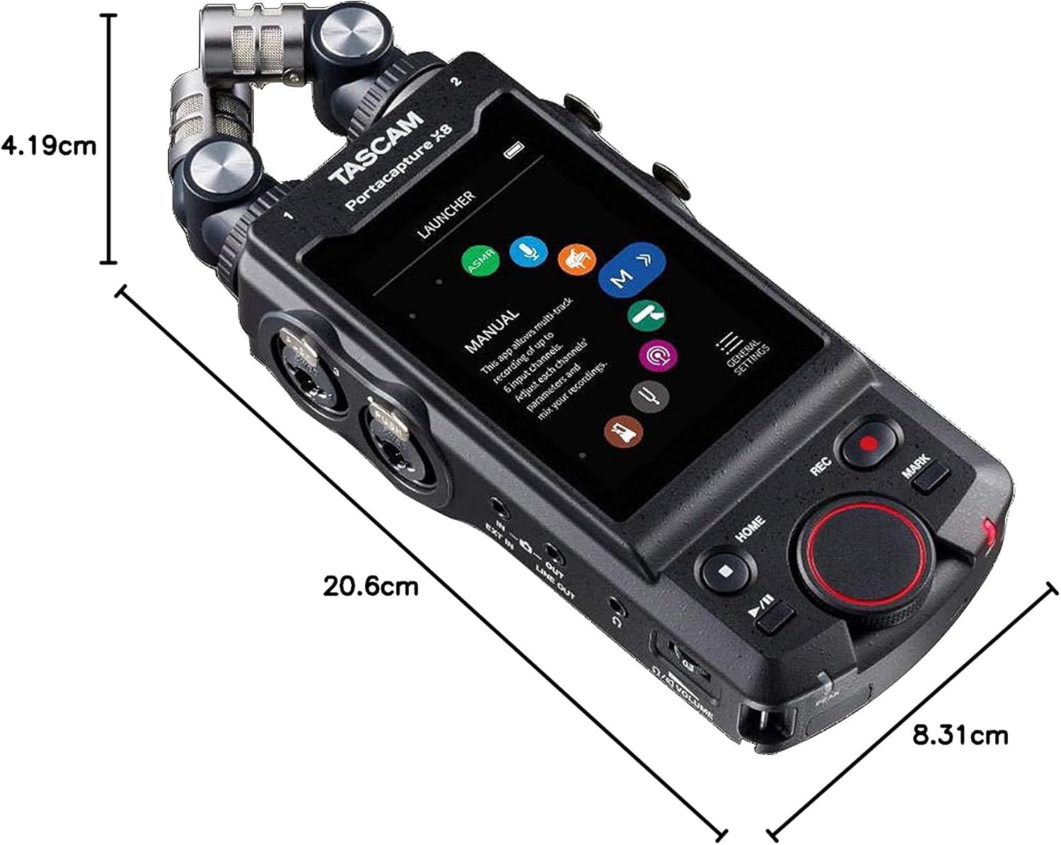 - Zwei abnehmbare Kondensatormikrofone mit 14,6 mm grosser Membran (Positionierung in AB- oder echter XY-Konfiguration)