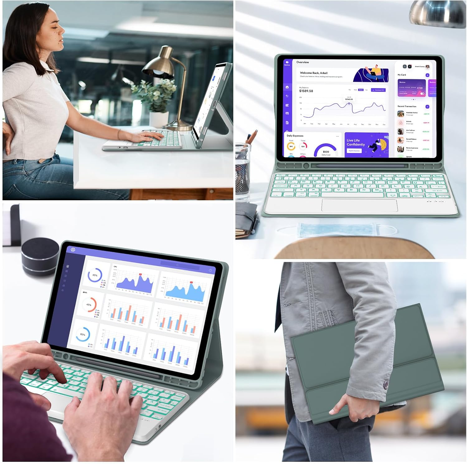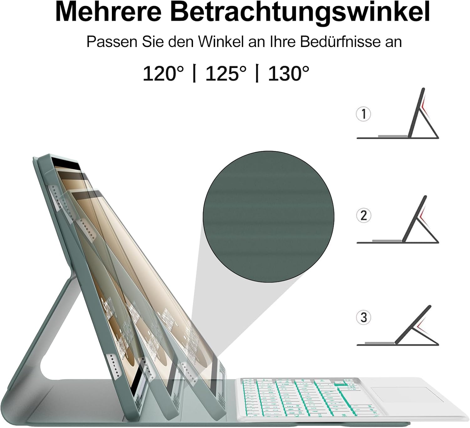- Samsung Tablet A9 Plus Hülle mit Tastatur: Dieses galaxy tab A9 Plus hülle mit tastatur unterstützt 360-Grad-Drehung für flexible Quer- und Hochformatansicht. Und es unterstützt mehrere Standpositionen. Hilft Ihnen, den bequemsten Winkel zum Lesen
