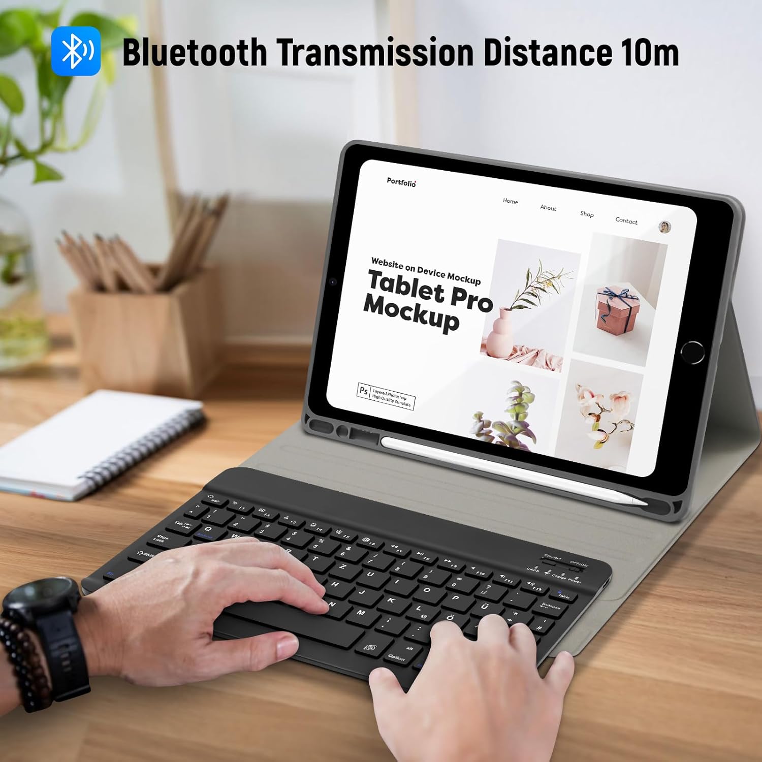 - 【Magnetisch Abnehmbare Konstruktion】Diese hülle mit tastatur fürIpad Tastatur 9./8./7 ist magnetisch, wodurch sie leicht umpositioniert oder aus der Hülle entfernt werden kann. Ausgestattet mit nützlichen Shortcut-Tasten und kompatibel mit den