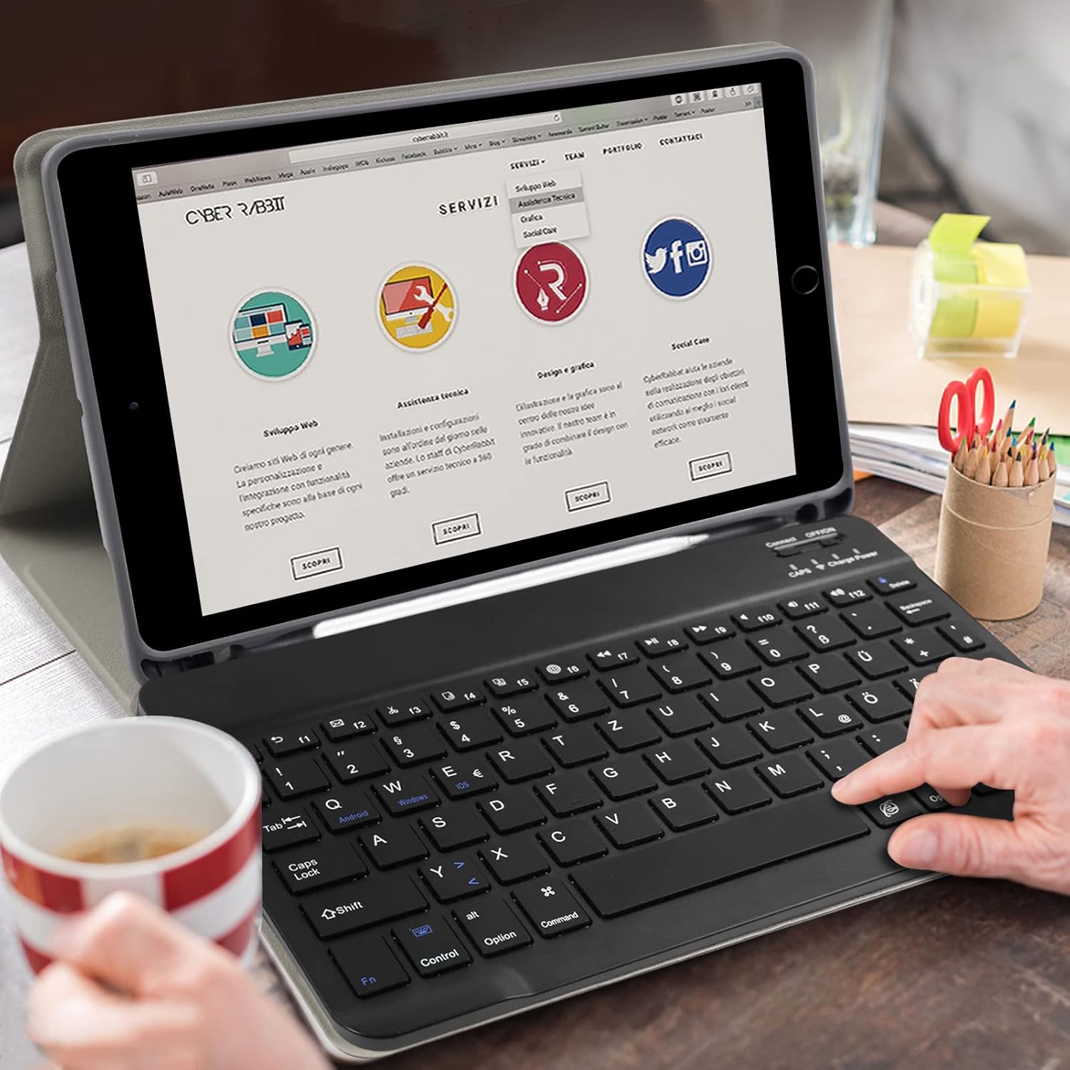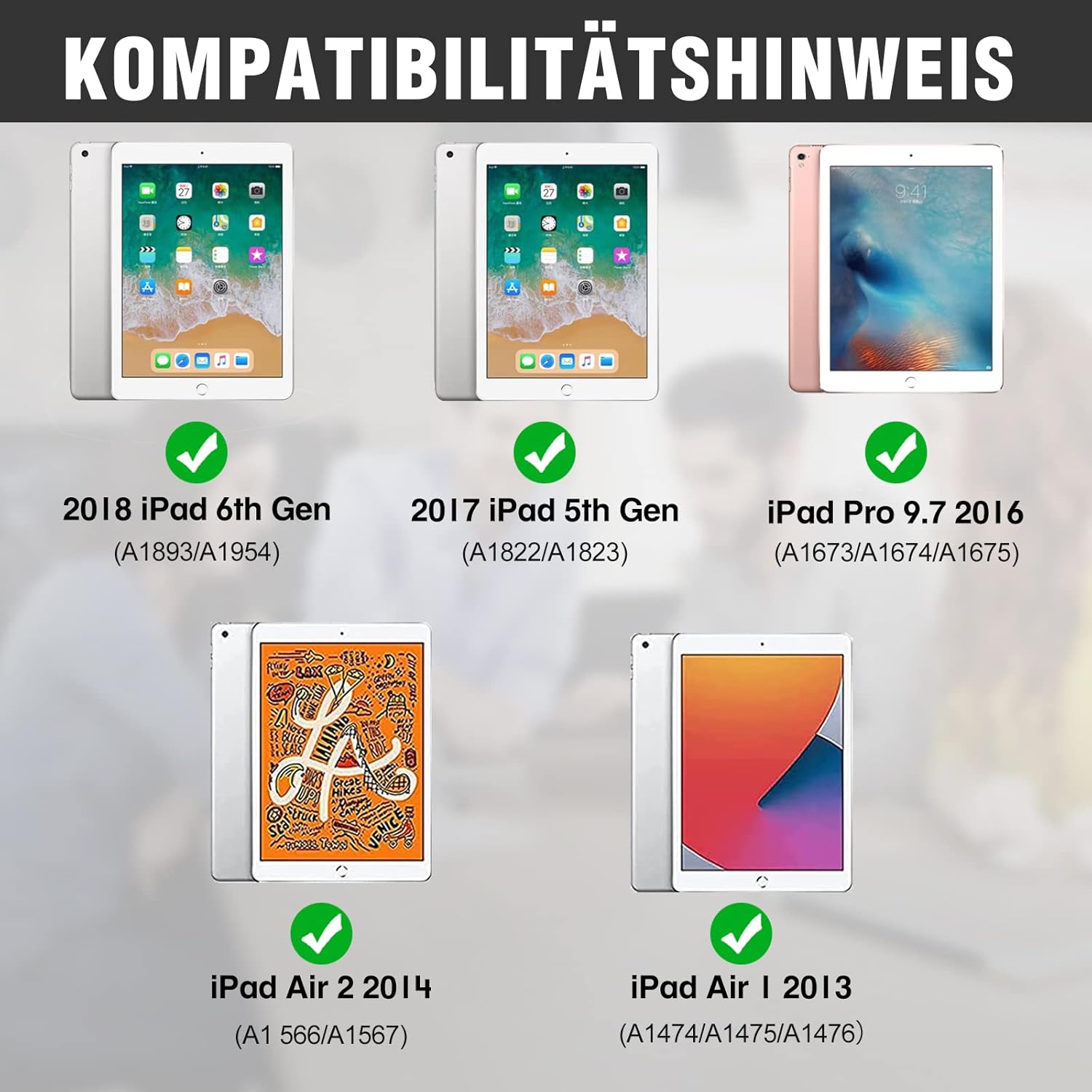 - 【Tablet Hülle mit Tastatur für iPad 9,7 Zoll】Die iPad Tastatur Hülle 9.7 Zoll 2018 ist mit vielen Modellen kompatibel, wie 2018 iPad 6. Generation (A1893/A1954), 2017 iPad 5. Generation (A1822/A1823), iPad Pro 9.7 2016 (A1673/A1674/A1675), iPad