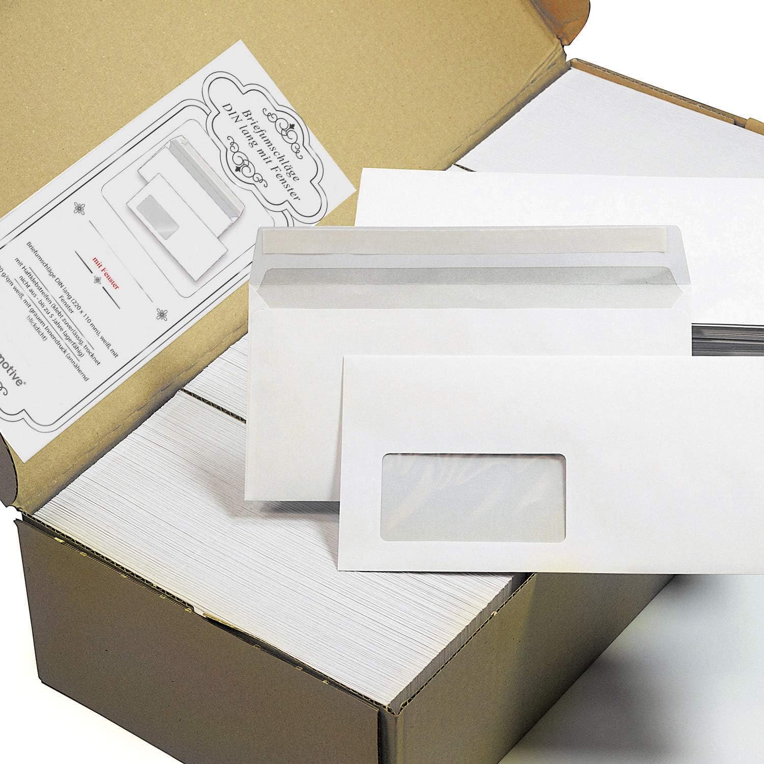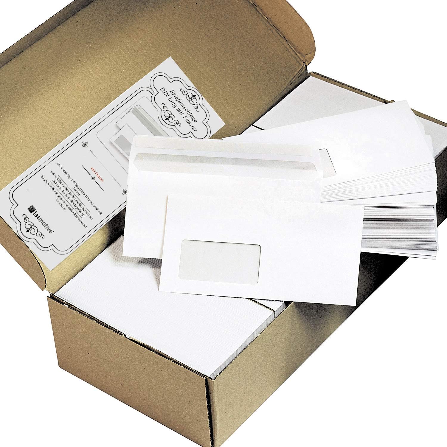- 1.000 Briefumschläge DIN lang (220 x 110 mm) MIT Fenster, Traditionsmarke in hoher Qualität von TATMOTIVE
