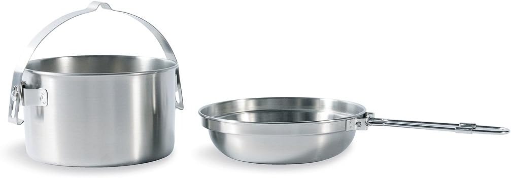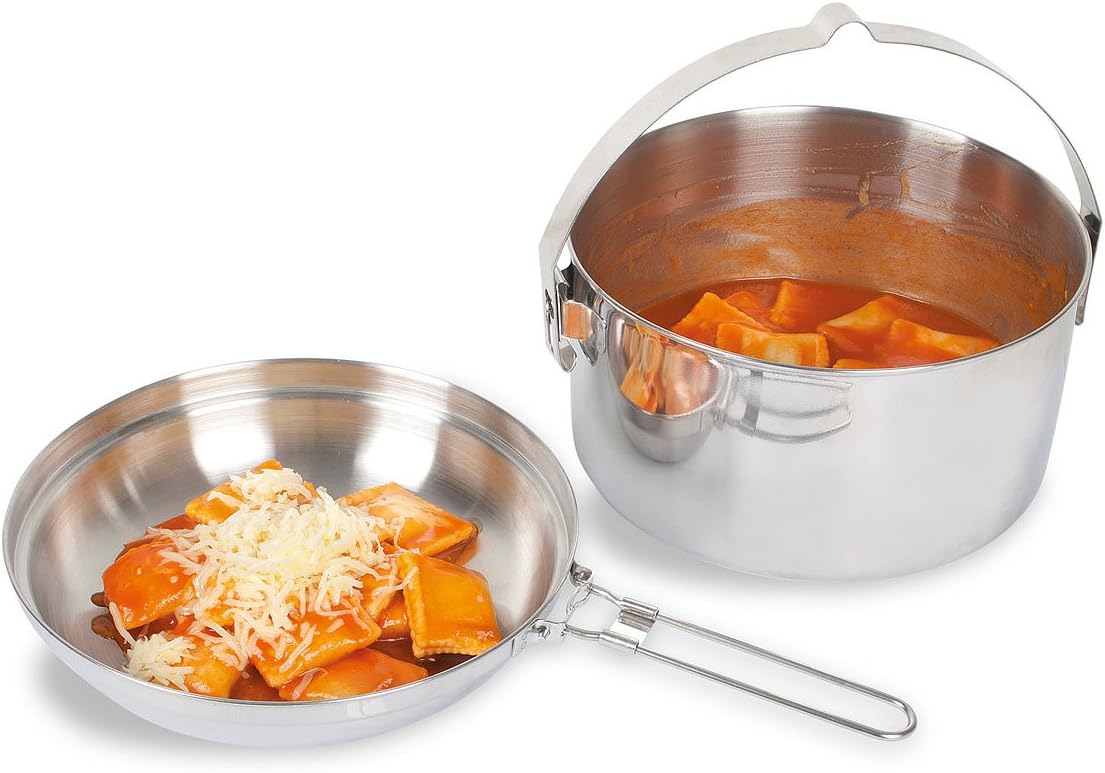 - Kochset bestehend aus Topf (Ø 13,5 x 8 cm, 210 g) und Pfanne (Ø 14,5 x 4 cm, 130 g)