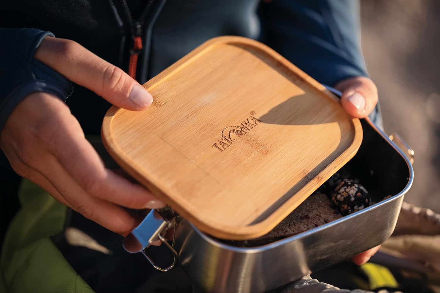 • EINFACH ZU REINIGEN: Die Lunch Box ist spülmaschinenfest und auch per Hand leicht zu reinigen (gilt nur für die Dose aus Edelstahl, nicht für den Holz-Deckel)
