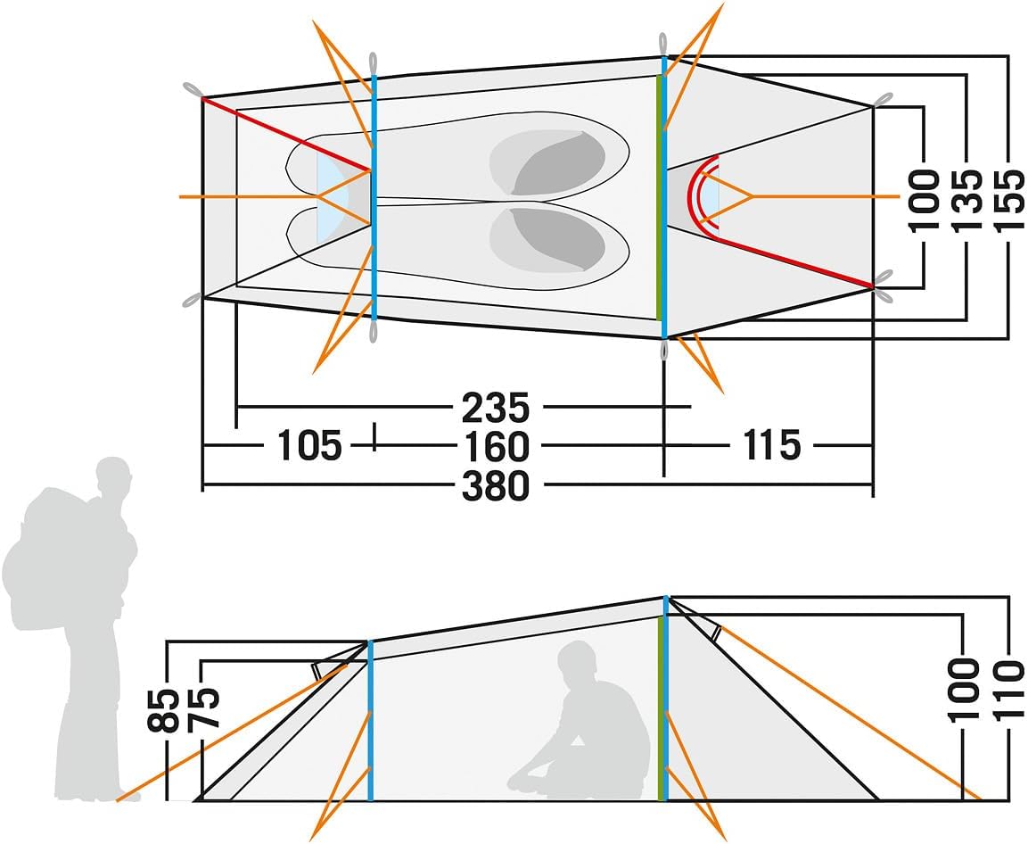 • Material Aussenzelt: 20D Nylon 6 Ripstop Si, 100 % Polyamid mit Silikon-Beschichtung