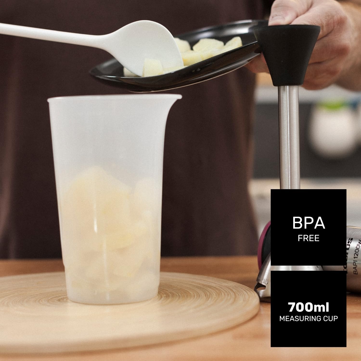 - ZUBEHÖR Inklusive BPA-freiem Messbecher (Bisphenol A) spülmaschinengeeignet Der gesamte Körper des Stabmixers ist ebenfalls BPA-frei. Kabellänge 110 cm