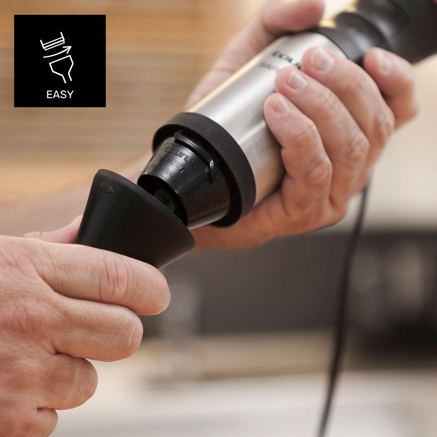 - Turbo-Rotationssystem. Klingen mit Turbo-Rotationssystem für perfekte Zirkulation von Lebensmitteln für gleichmässige und spritzfreie Ergebnisse