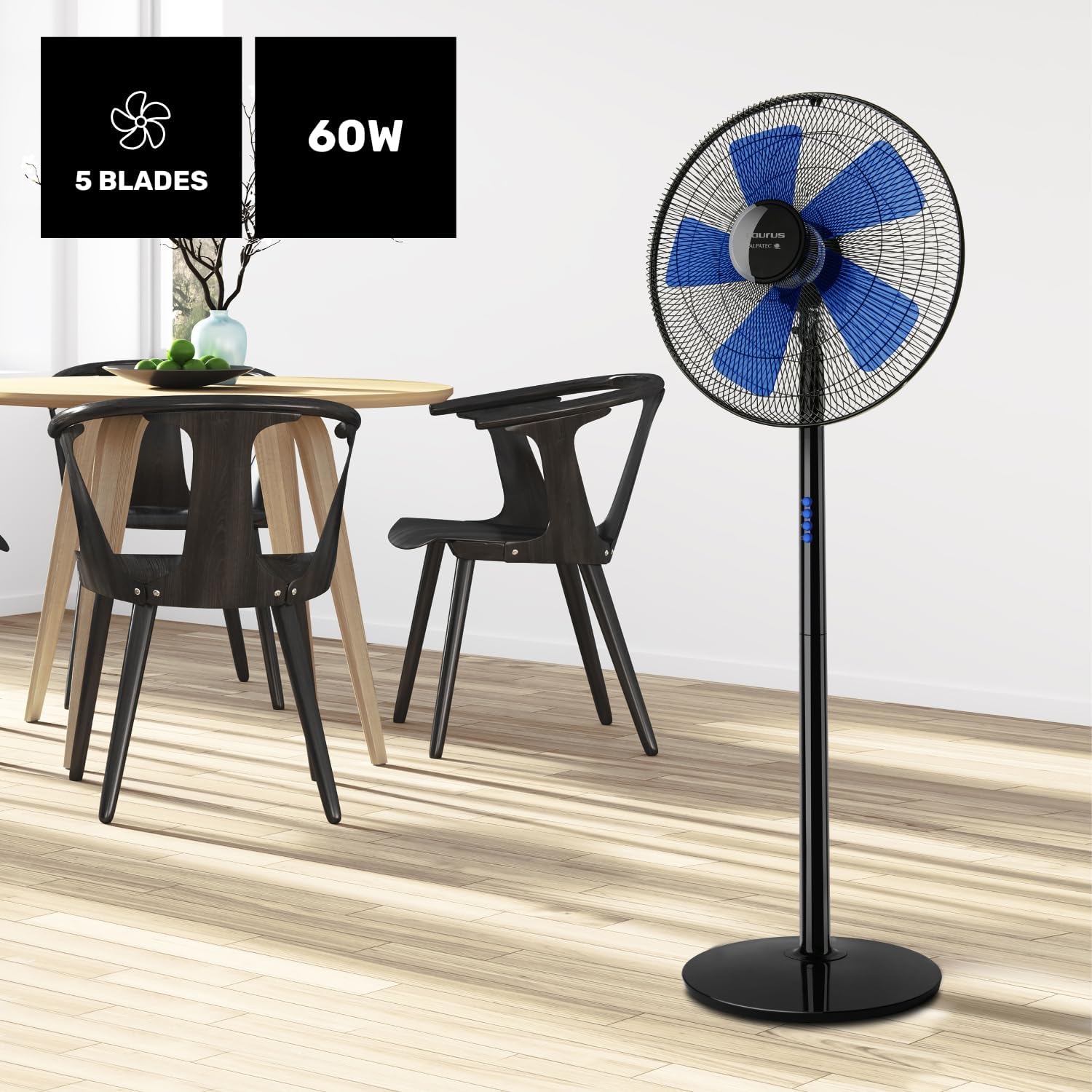 - Elegantes Design mit glänzenden Schwarztönen und metallisiertem Blau; mit 30 cm Durchmesser, 5 Flügeln und 40 W Leistung, Gleichgewicht für gute Belüftung bei geringem Platzbedarf