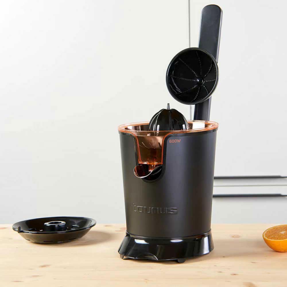 - Saft ohne Mühe. Entsafter mit Druckhebel, um mühelos und auf bequemste Weise mehr Saft zu erhalten, ohne sich die Hände schmutzig zu machen. Automatische Inbetriebnahme durch Drücken des Kegels mit der Frucht. Aluminiumhebel mit Gummigriff. Es hat Saugnäpfe an der Basis für zusätzliche Stabilität und Komfort.