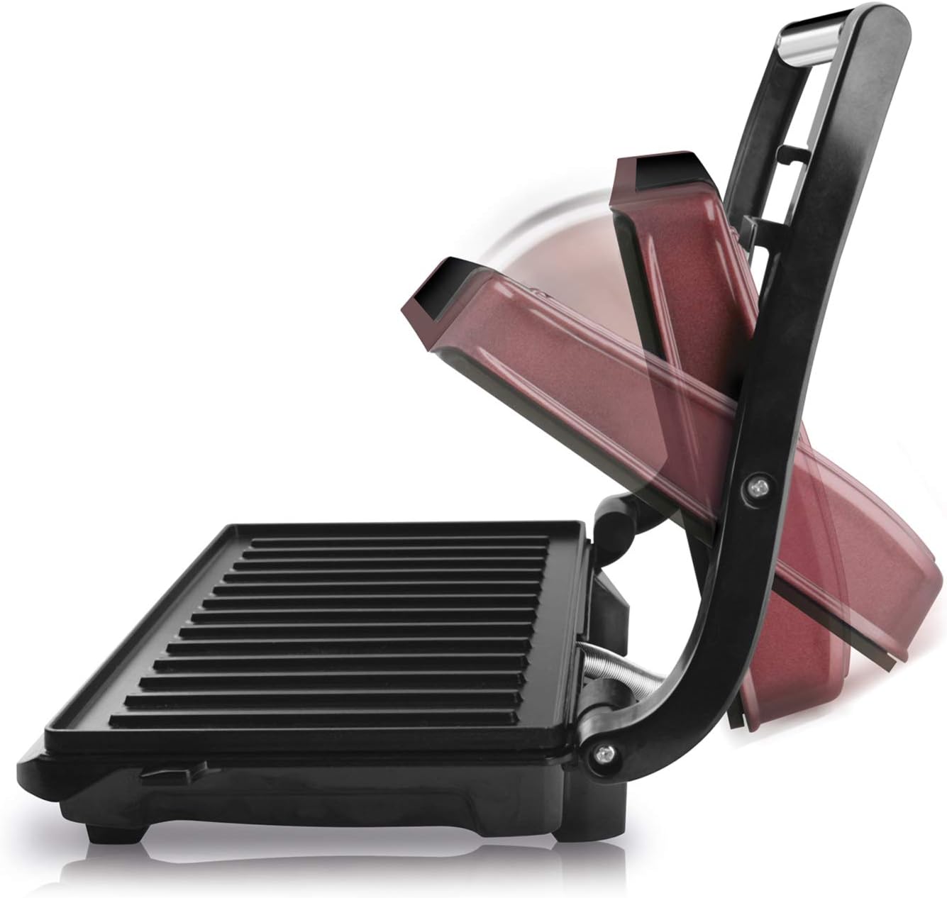- Merkmale:Platten mit Antihaftschicht, System zur Sicherung des Verschlusses, verstellbare Gelenke, Kontrollleuchte zeigt an, wenn der Grill betriebsbereit ist, rutschhemmende Füsse, Fettauffangschale, 23 x 14,5 cm grosse Grillfläche