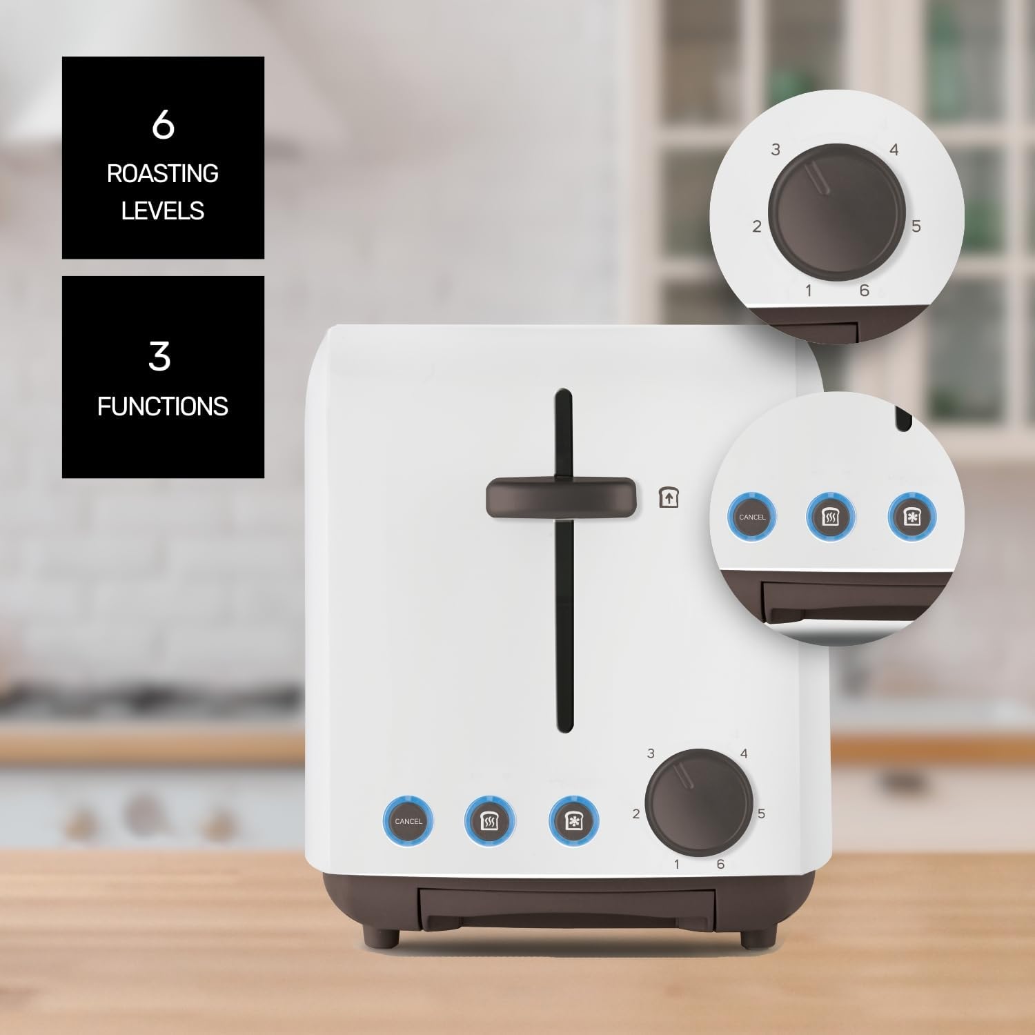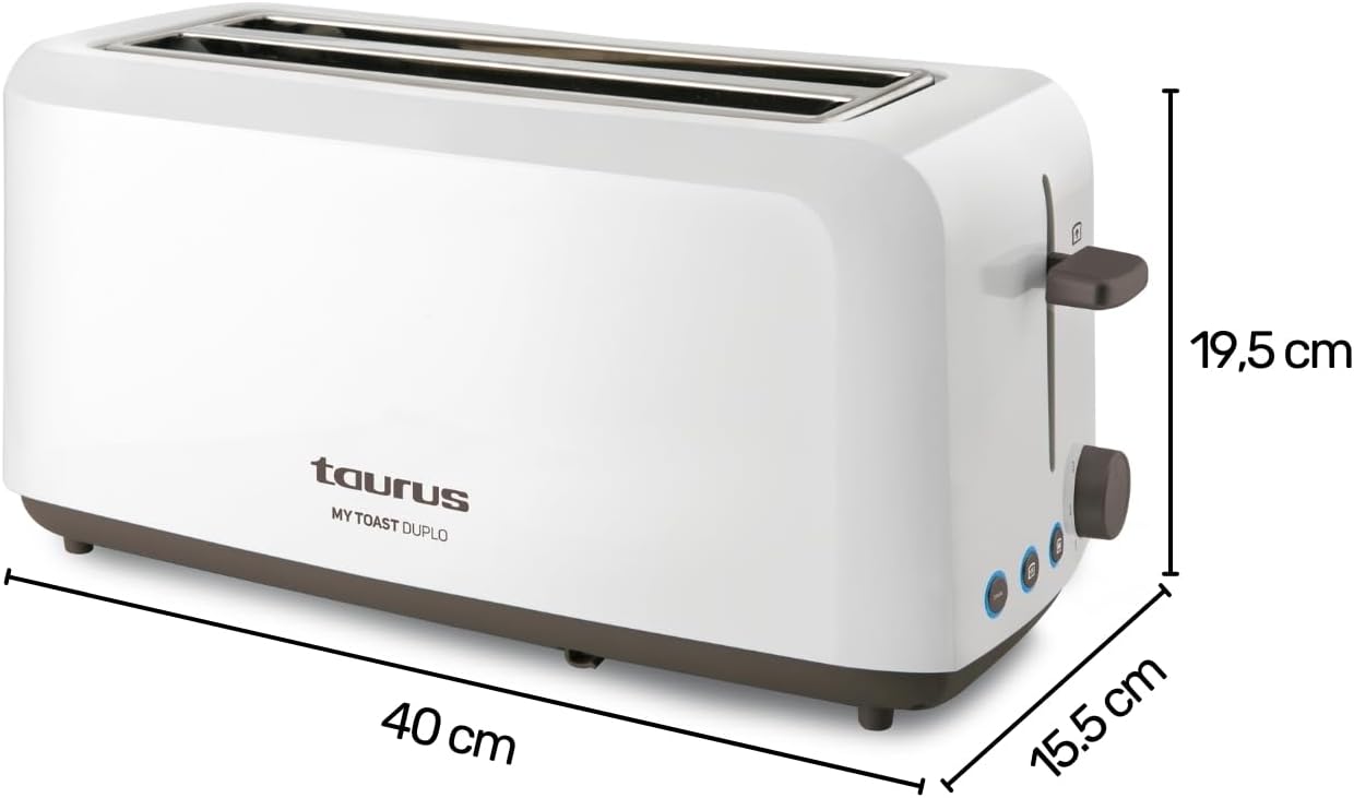 - DESIGN: elegantes, minimalistisches und kompaktes Design. Der Toaster nimmt sehr wenig Platz ein und kann in jeder Ecke der Küche aufgestellt werden.