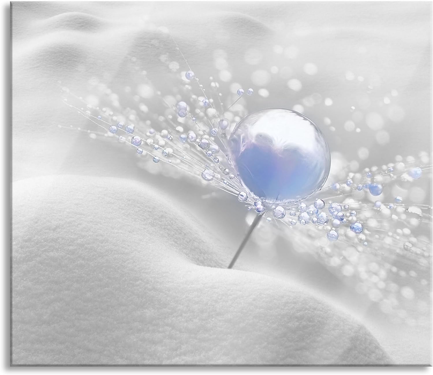 Tautropfen Pusteblume Herdabdeckplatte & Spritzschutz aus Echtglas | Für Herd-Kochfelder | 60x52 cm