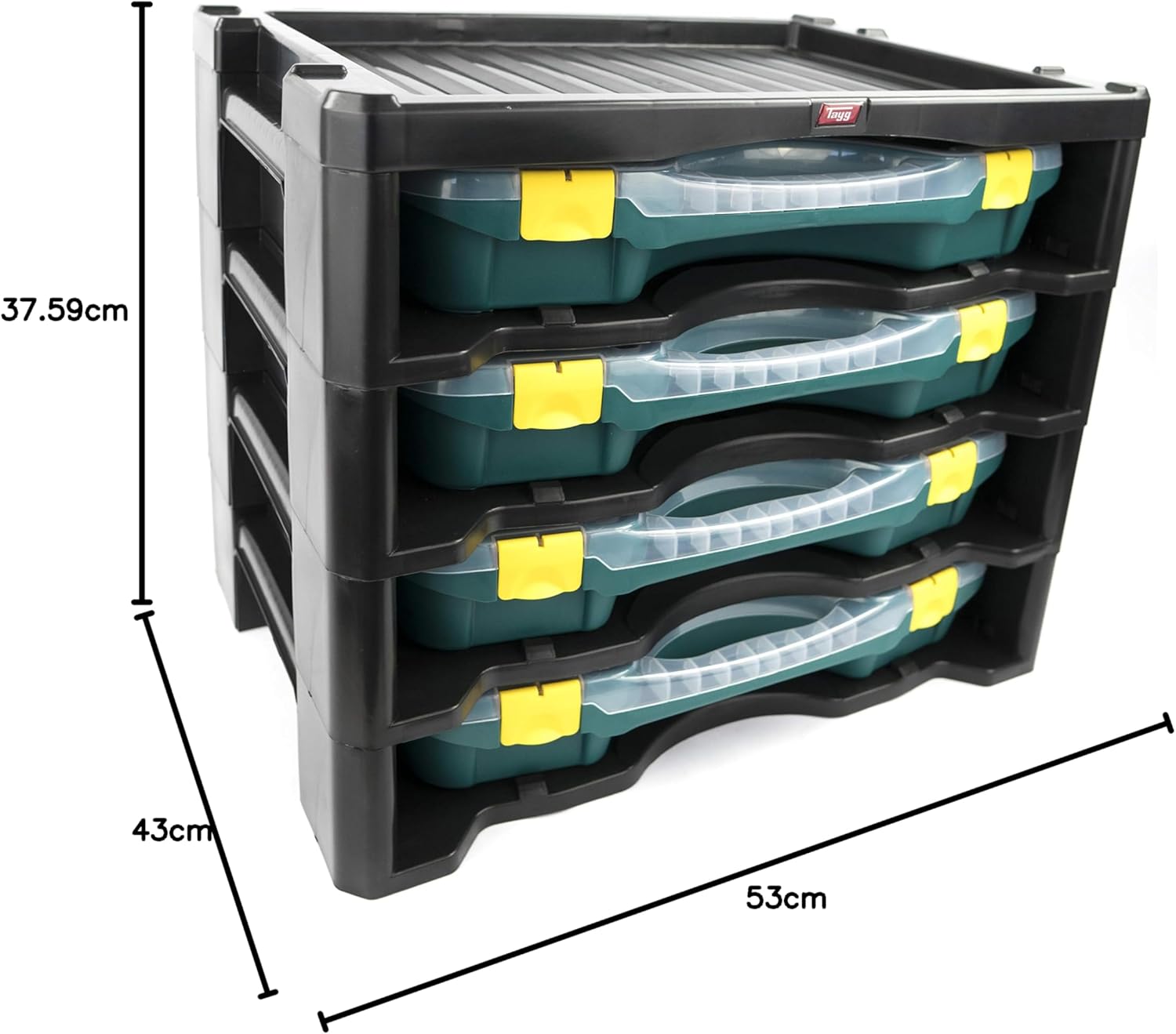 TAYG Multibox N° 3 (inkl. 4 Kleinteileboxen N° 24, Aufbewahrungssystem für Kleinteile, Box stapelbar