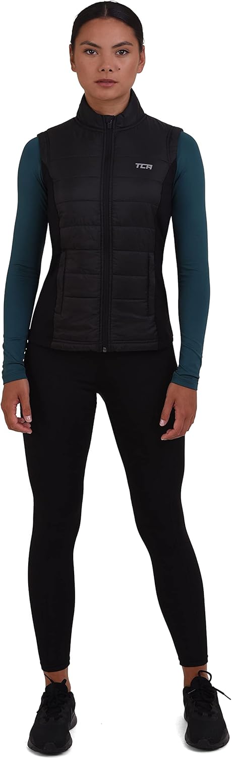 TCA Damen und Mädchen Excel Runner Leichte Laufweste mit Reissverschlusstaschen XS Schwarz, XS Schwa