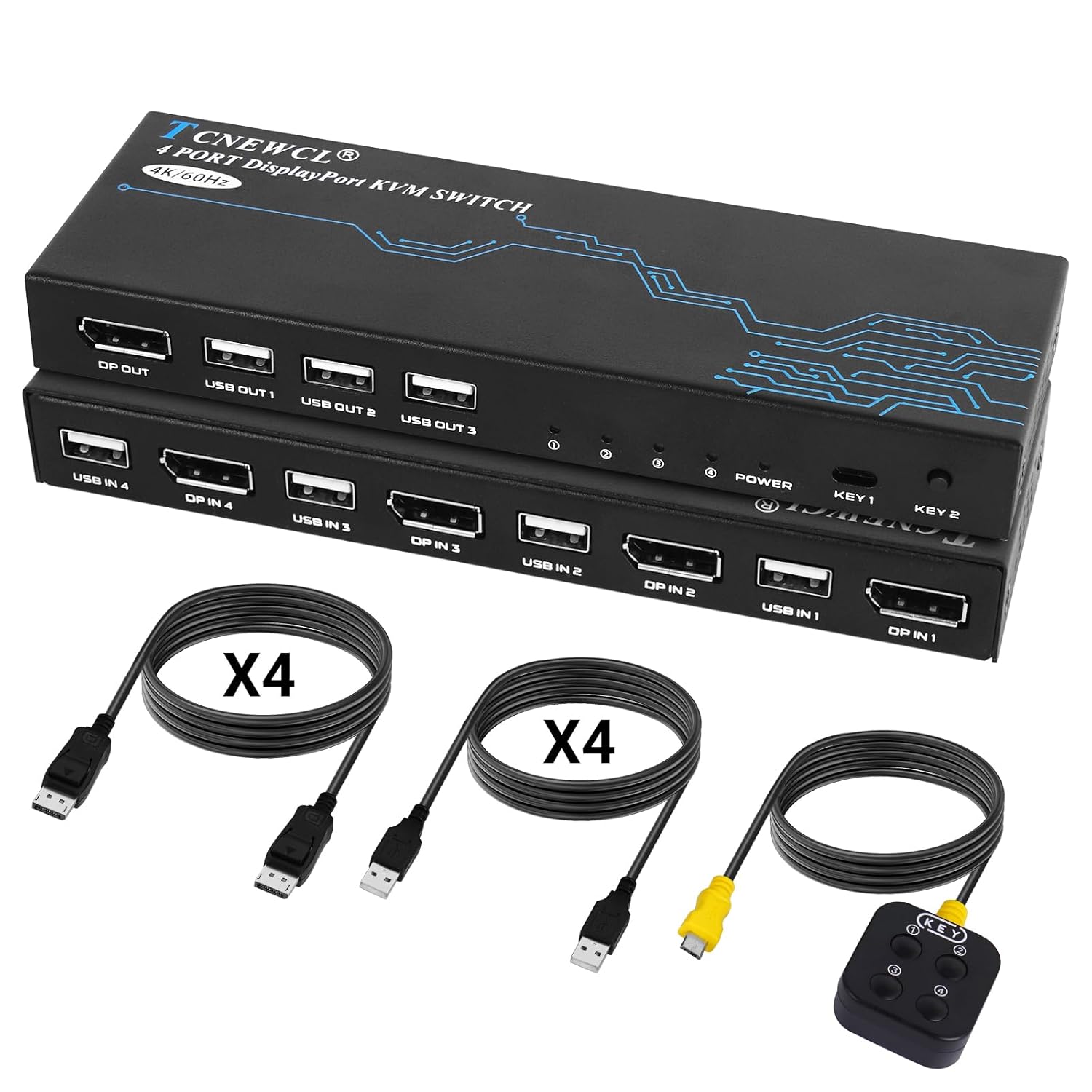 - 【Treiber kostenlos KVM DisplayPort -Switch】Plug and Play, es müssen nicht jedesmal Treiber installiert werden. Dieses Produkt wird mit 4 DisplayPort-Kabeln, 4 USB-Kabeln,1 Kabelgebundener Schalter, 1 Benutzerhandbuch.