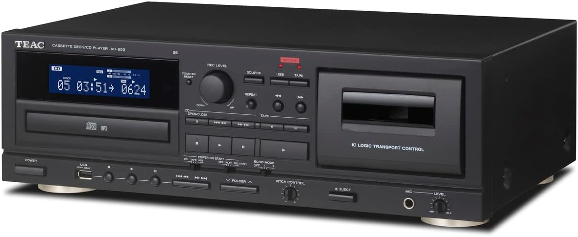 - Vielseitiger CD- und Kassettenspieler: Der Teac AD-850-SE bietet CD MP3-Wiedergabe, USB-Aufnahme und Wiedergabe sowie ein Kassettendeck mit Tonhöhenregelung und Timer-Aufnahme Funktion.