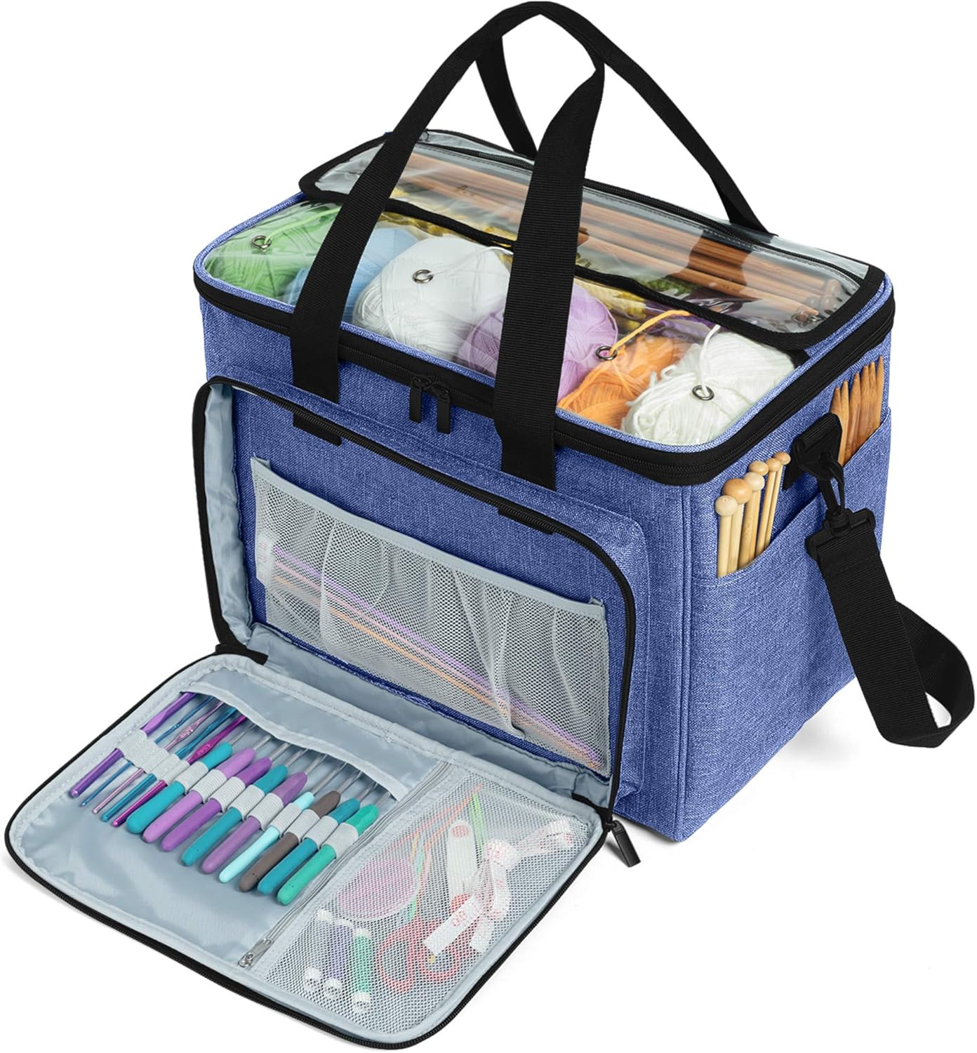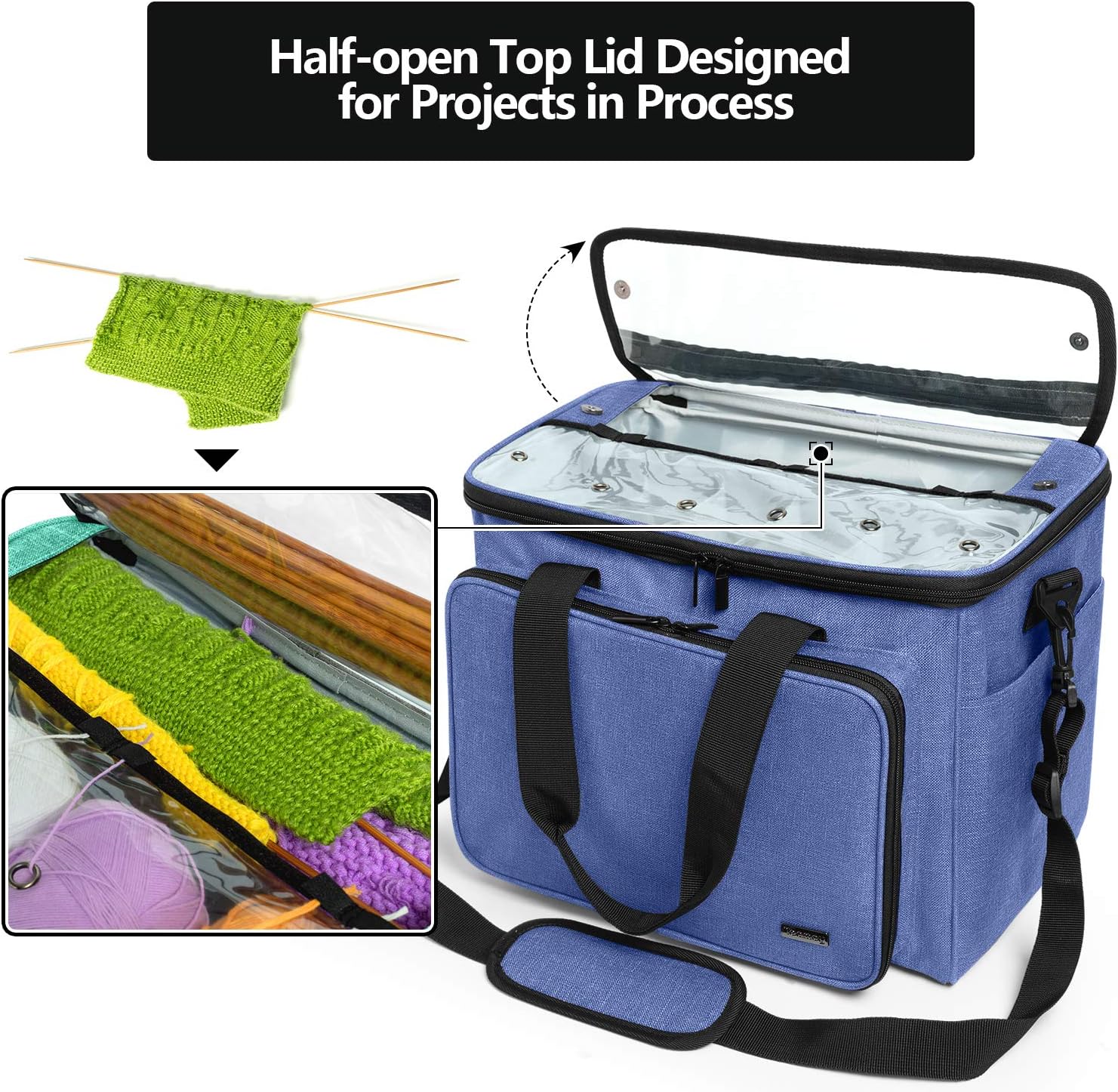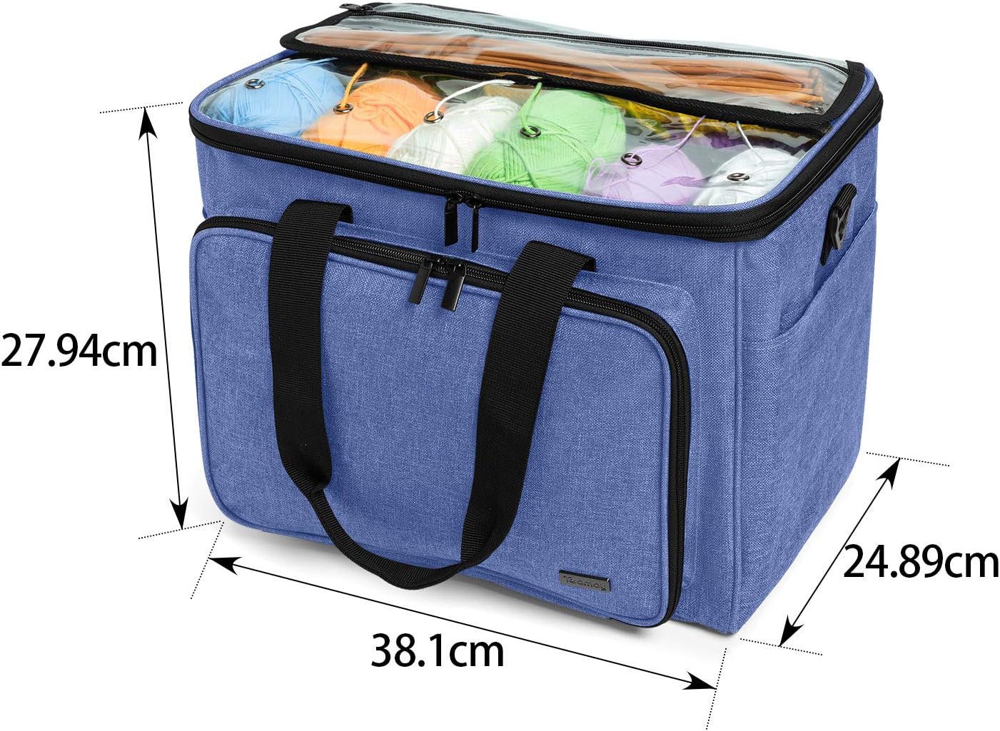 - KLAR OBEN: Die flexible und klare PVC-Abdeckung ermöglicht es Ihnen, leicht zu sehen, was innen ohne Öffnen der Tasche. Die 6 kleinen Löcher für verschiedene Farben des Garns zum Durchfliessen. 3 Sätze Klettstreifen halten Garn an Ort und Stelle,