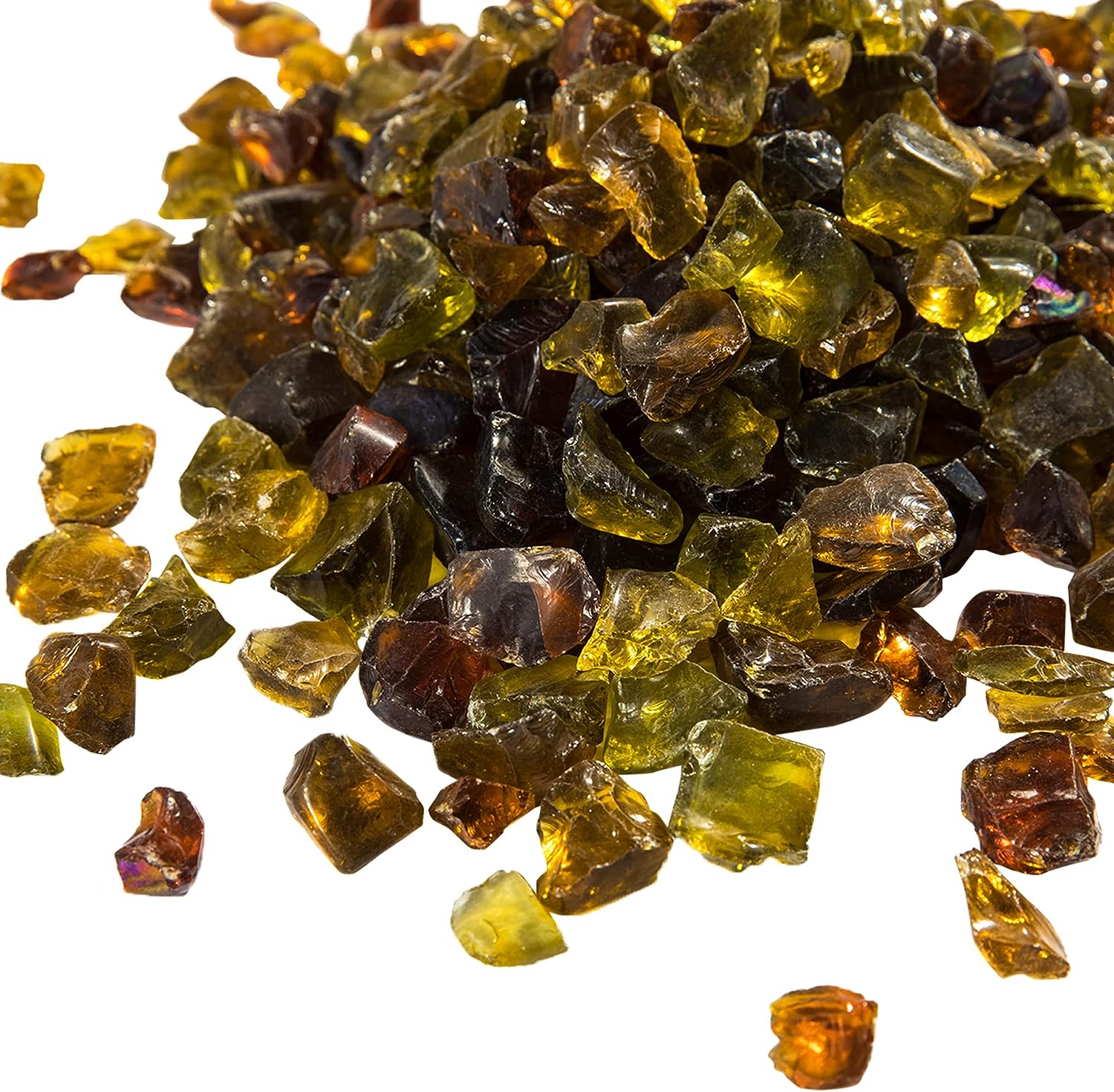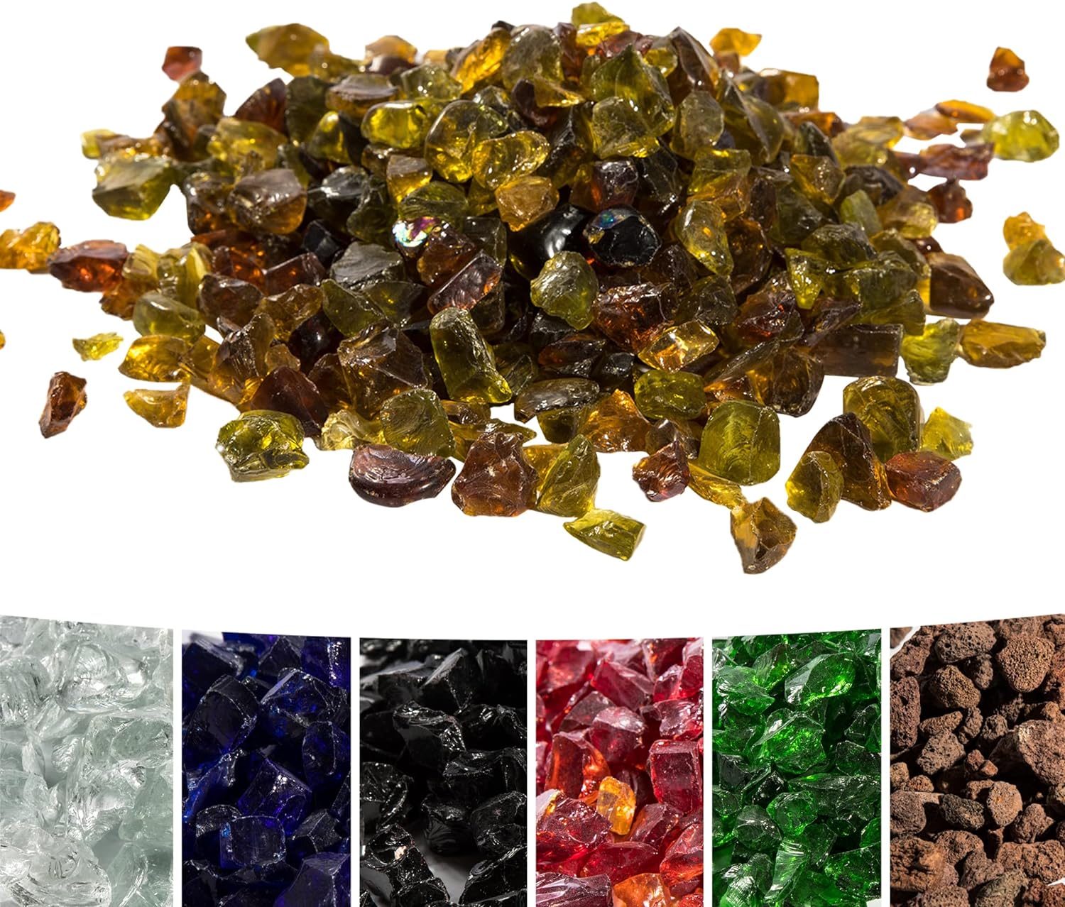 - ENTHÄLT: 4 kg Steinchen aus gehärtetem Glas. Kontinuierlicher irisierender Schimmer tagsüber mit den Sonnenstrahlen und nachts mit den Flammen.