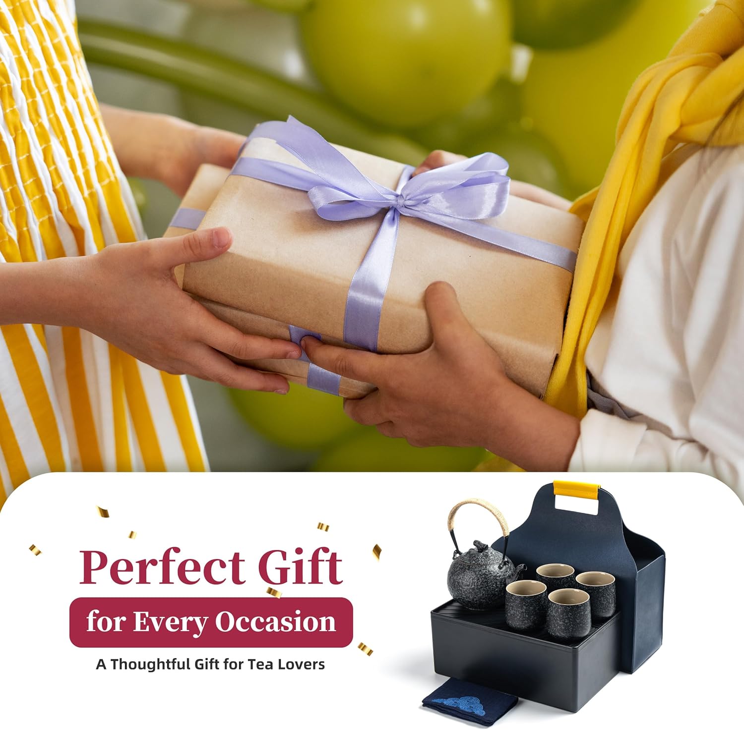 - 🍃[Umfassende Set-Konfiguration] Das Set enthält eine 700ml/25oz Teekanne, 4 205ml/7.2oz Teetassen, einen 304 Edelstahlfilter, ein Tee-Tablett für die Reiseaufbewahrung und ein besticktes Wellentuch im japanischen Stil. Mit diesem Komplettset haben
