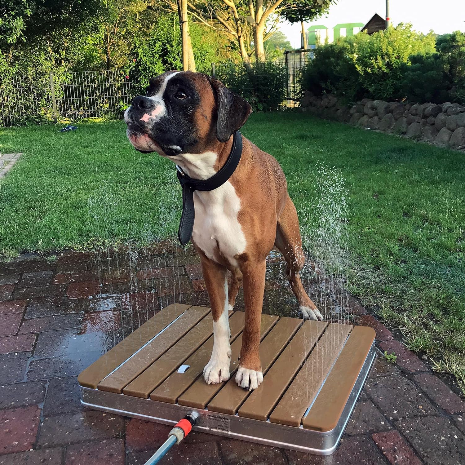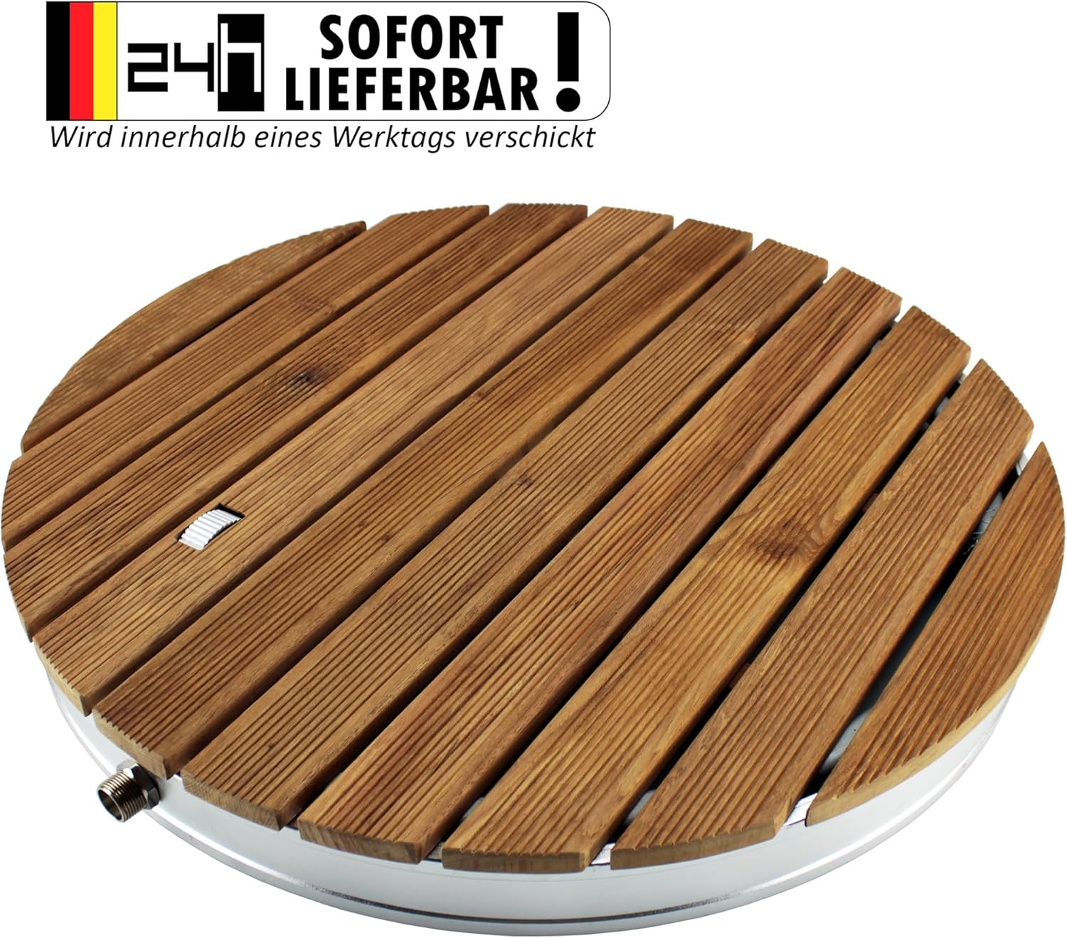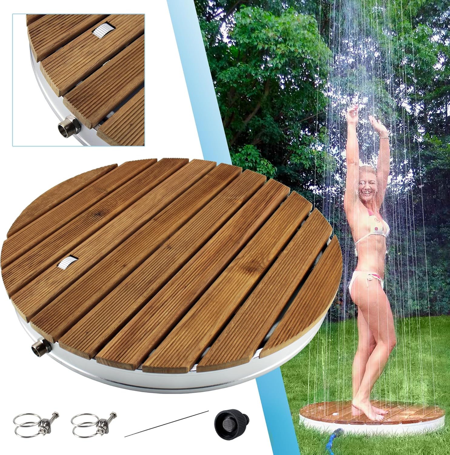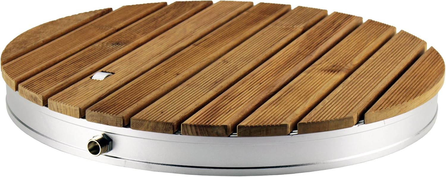 • Innovative Gartendusche mit runder, massiver Teak-Holz Bodenplatte - sorgt an heissen Sommertagen für eine erfrischende und wohltuende Abkühlung unter freiem Himmel & erfrischenden Wasser-Spass für Kinder, Erwachsene & Vierbeiner - robust und wetterbeständig