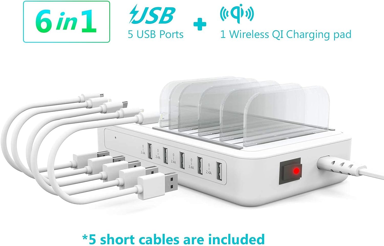 - Kompakte Ladestation für mehrere Geräte: Mit 5 USB Port und einem QI kabellosen Induktives Ladegerät müssen nicht mehr mehrere Ladegeräte für jedes Telefon und Tablet an die Steckdose angeschlossen werden. Diese kompakte Ladestation für mehrere
