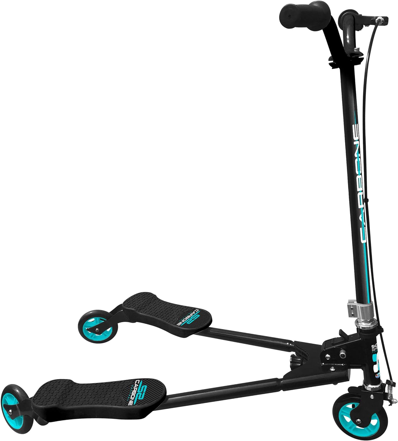 - Skaten, ohne die Füsse auf den Boden zu legen, indem das Gewicht von einer Seite zur anderen bewegt wird. Ein Roller mit 3 Rädern zum Sport, Ausgeben und Erleben von neuen Fahrgefühl