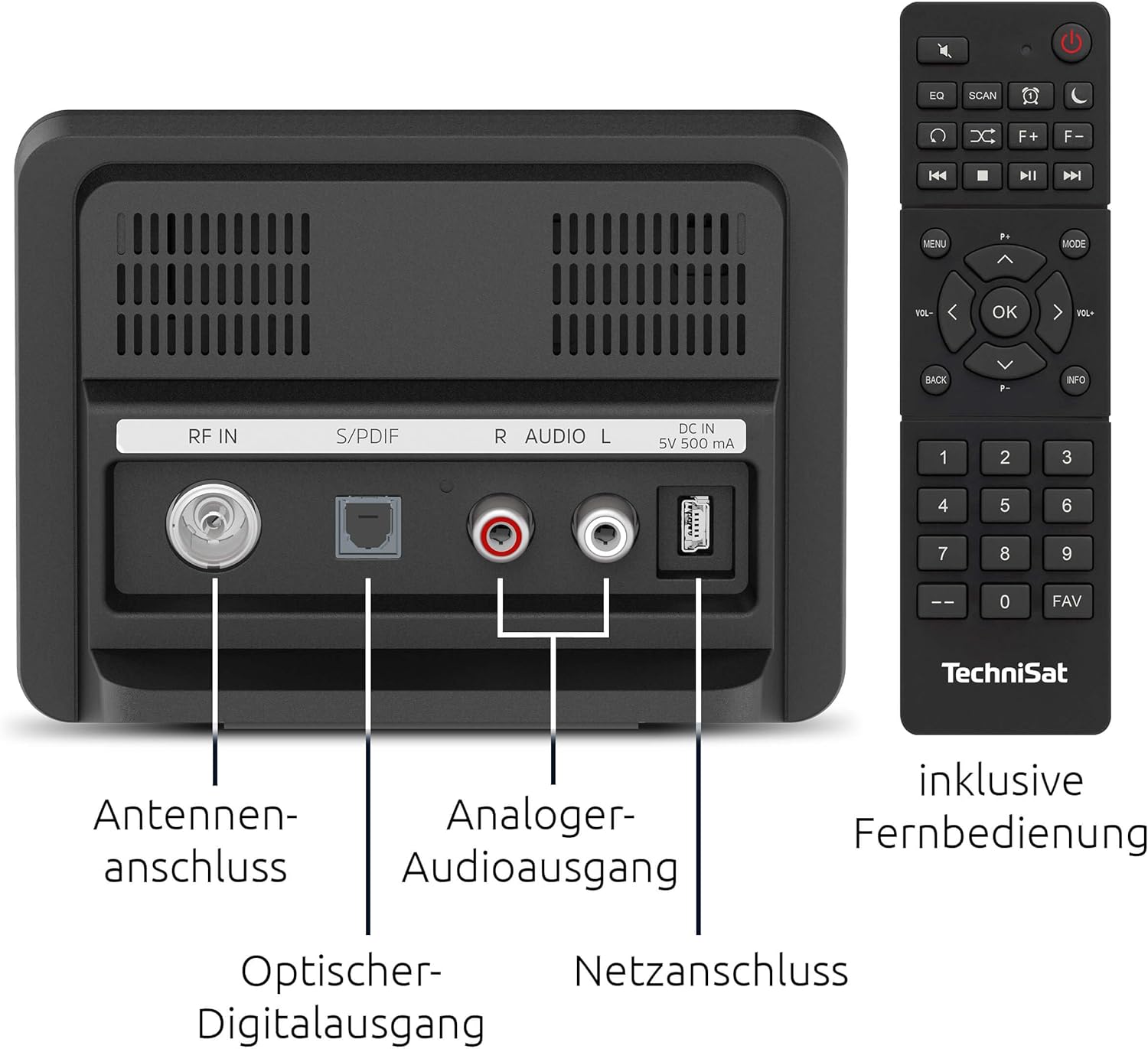 - Volle Flexibilität: Zusätzlich lassen sich jeweils 30 UKW und DAB-Sender abspeichern. Die Bedienung erfolgt einfach und intuitiv mit der im Lieferumfang enthaltenen Fernbedienung