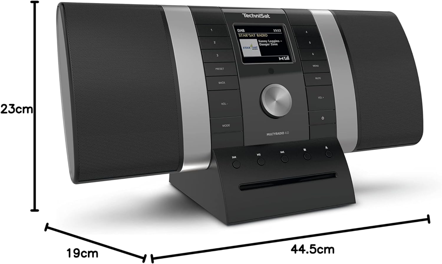 - Lieferumfang: Internet-Radio MULTYRADIO 4.0, Teleskopantenne, Netzteil, Fernbedienung, Bedienungsanleitung, Produktmasse (BxHxT) 44,5 x 23 x 19 cm