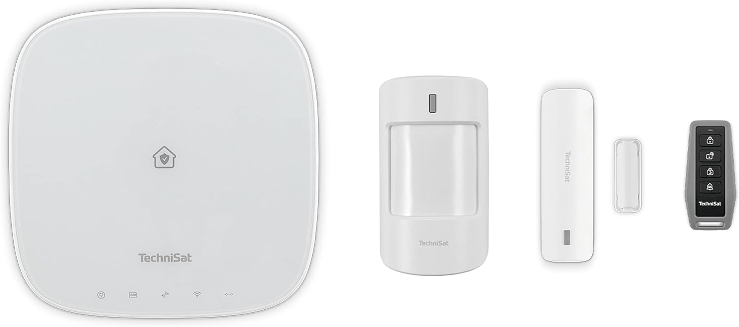 - Lieferumfang: TECHNISMART Zentraleinheit, (Server in Deutschland, keine Profilbildung), Netzteil (Kabel 100 cm), Netzwerkkabel (100 cm), Fernbedienung, Bewegungsmelder, Tür-/Fensterkontakt, Montagezubehör, Bedienungsanleitung