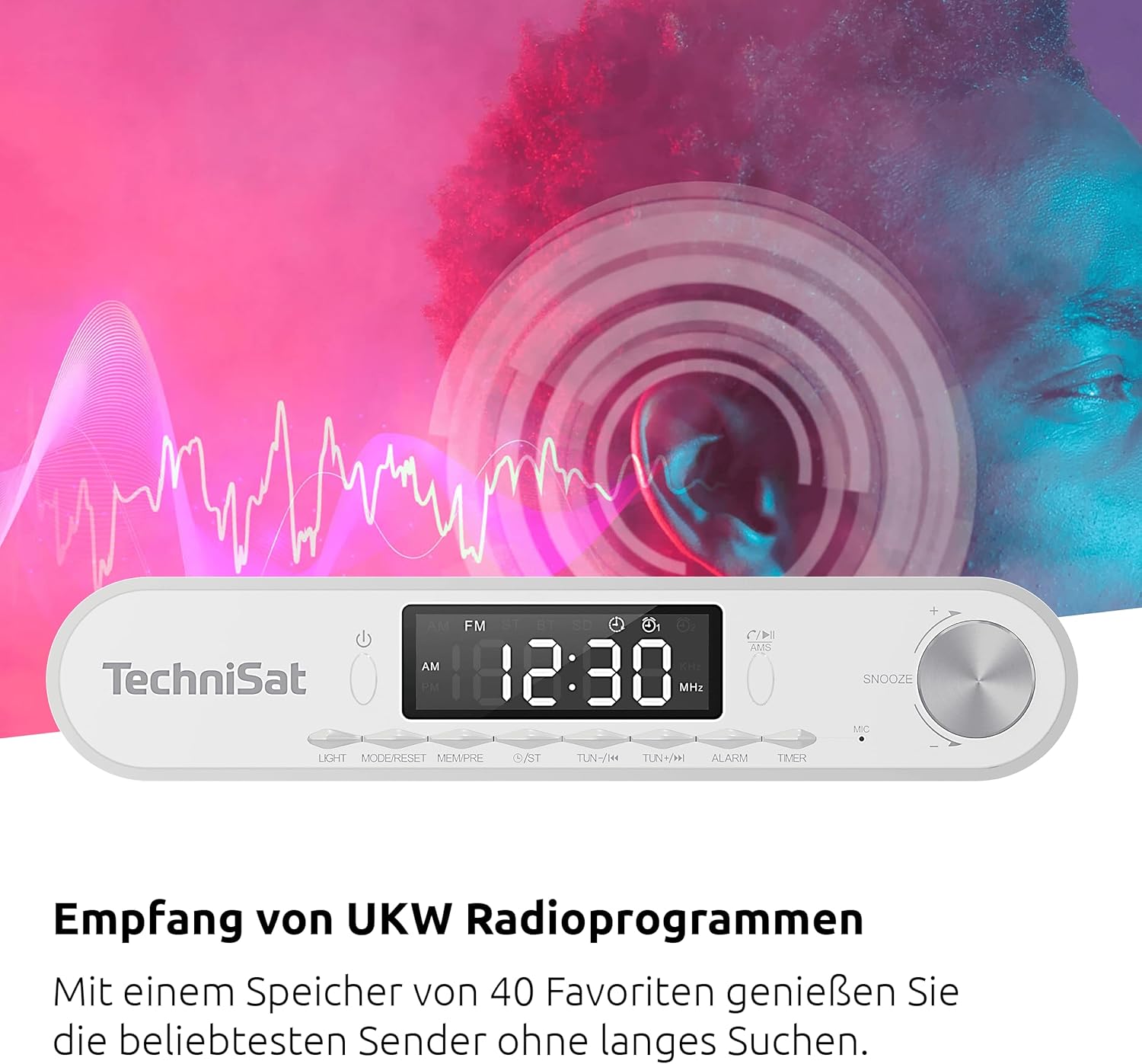 - Vielseitiges Design: Das moderne UKW-Radio eignet sich perfekt als Unterbau-Küchenradio oder freistehendes Radio. Es passt mit seinem eleganten Gehäuse ideal zu modernen Einrichtungsstilen in Küche oder Schlafzimmer