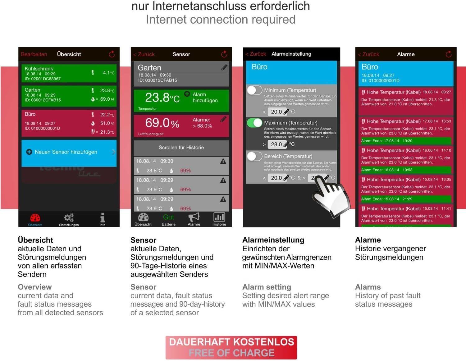 - Sie benötigen für die Inbetriebnahme dieses Zusatzsensors die Mobile Alerts App (kostenfrei für iOS und Android erhältlich) für ihr Smartphone, sowie das Gateway
