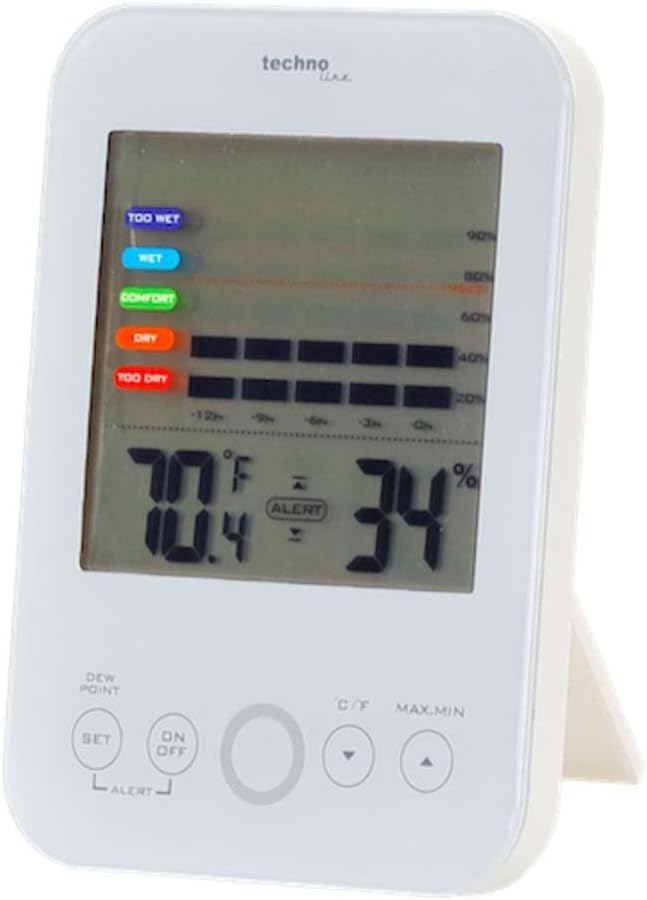 - Ein Blick reicht aus um Informationen über die AKTUELLE INNENTEMPERATUR und INNENLUFTFEUCHTE zu erhalten.