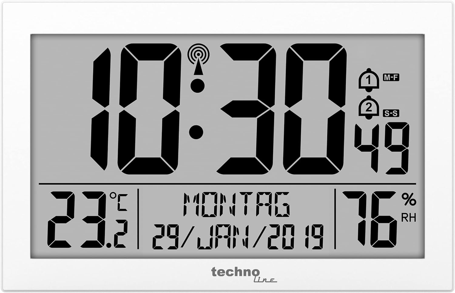 - Neben der genauen Uhrzeit über das DCF-77 Signal, können Sie zusätzlich das Datum, den Wochentag, die Temperatur und die Luftfeuchtigkeit ablesen.