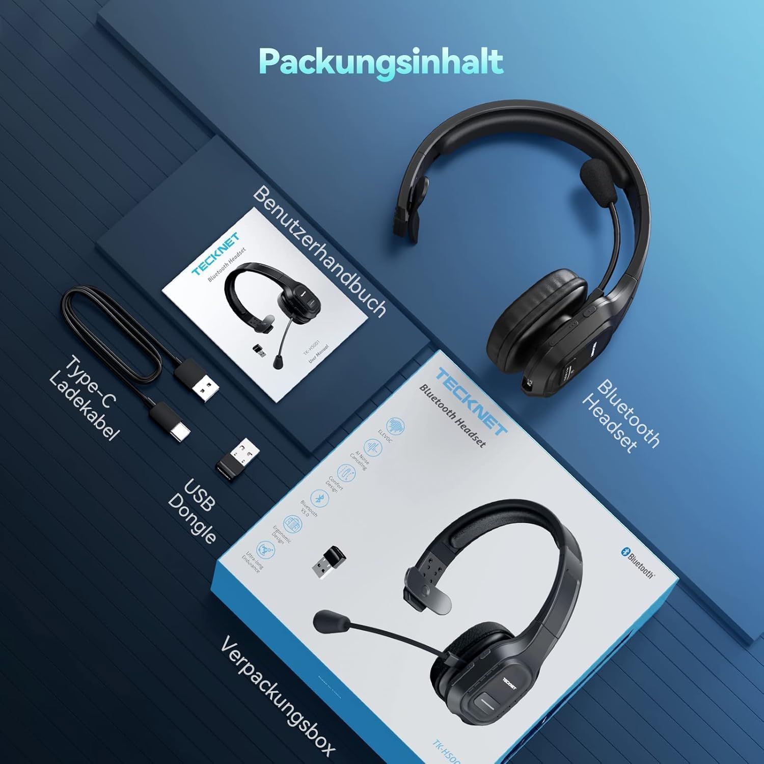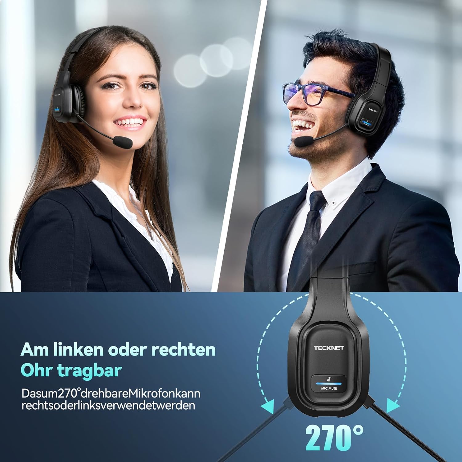 - LANGE BATTERIELEBENSDAUER UND UNTERSTÜTZUNG VON 2 BLUETOOTH-GERÄTEN VERBINDUNG: Das Bluetooth-Headset bietet bis zu 2 Tage (32-36 Stunden) Sprechzeit und 4 Tage Standby-Zeit. Vollständig aufgeladen in nur 1,5 Stunden (Ladeanschluss Typ C). Bieten Sie volle kabellose Freiheit mit einer Reichweite von 33 Fuss und können Sie sogar mit 2 Bluetooth-Geräten gleichzeitig verbinden. Perfekt für Büro, Zuhause, Remote-Arbeiten, Callcenter.