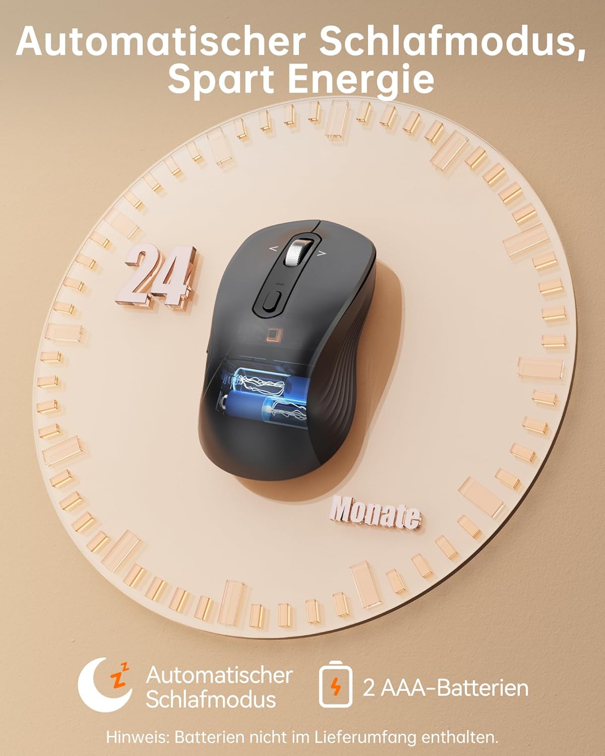 - 【Langlebige Leistung】Angetrieben von 2 AAA-Batterien (NICHT im Lieferumfang enthalten), verfügt diese Laptop Maus kabellos über einen intelligenten Auto-Sleep-Modus, der eine Batterielebensdauer von bis zu 24 Monaten ermöglicht. Im 2,4G-Modus: