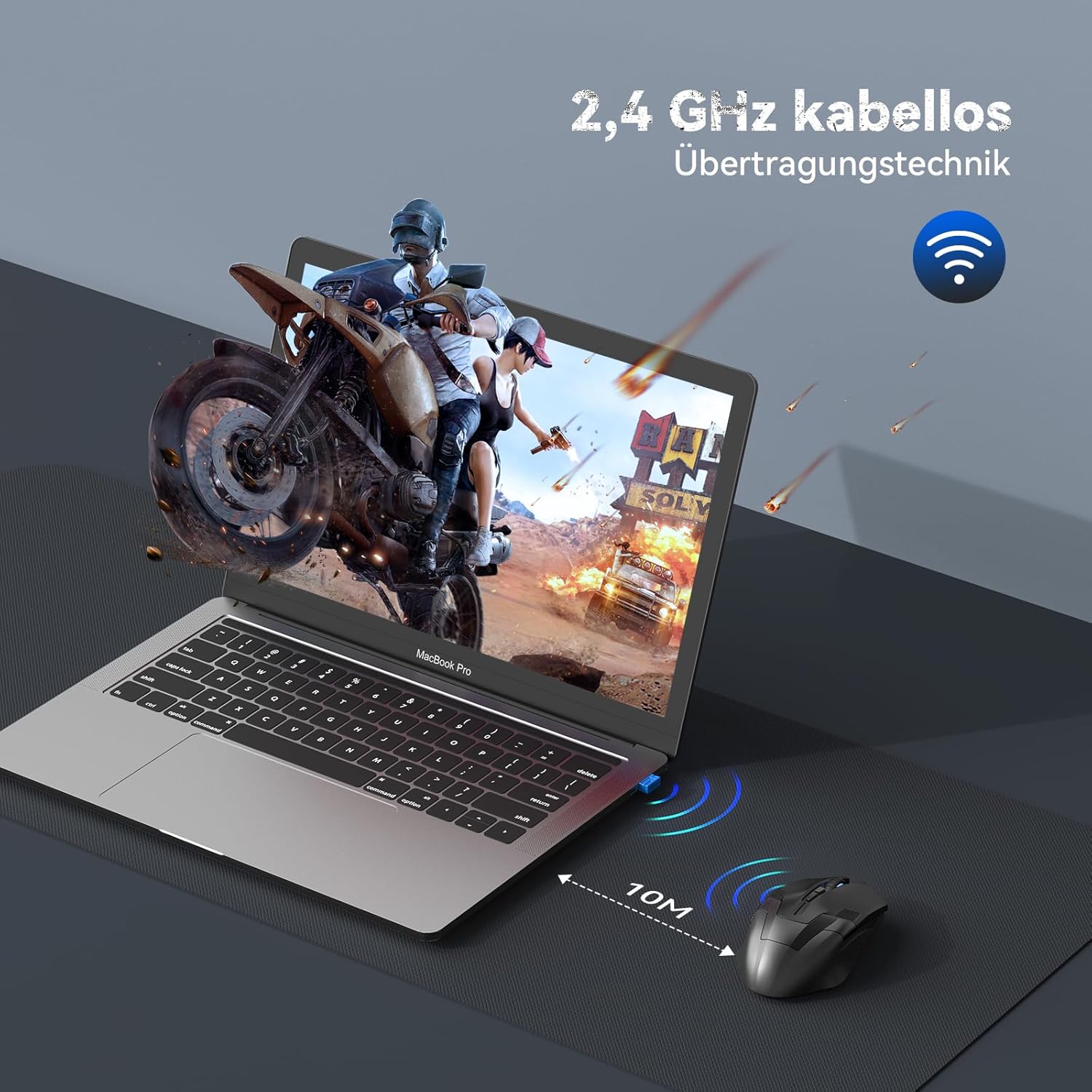 • 2.4GHz WIRELESS TECHNOLOGY: Die kabellose Gaming-Maus kann bis zu 10 Meter entfernt praktisch ohne Verzögerung oder Signalverlust arbeiten, Plug-and-Play, kein Treiber erforderlich (Hinweis: Tasten sind nicht programmierbar), kein Grund zur Sorge über