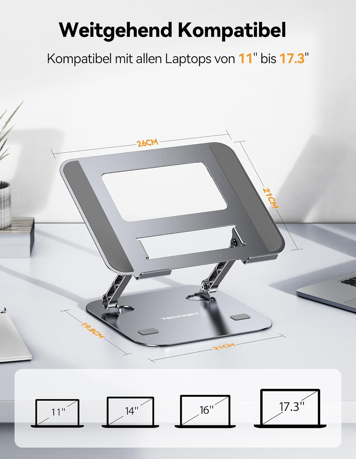 - 【Ergonomisch & Einstellbar】Der TECKNET Laptopständer hat eine Z-förmige Struktur, die sich leicht auf eine bequeme Höhe und einen Winkel nach Ihren Bedürfnissen einstellen lässt, was hilft, Nacken- und Schulterermüdung zu lindern und die