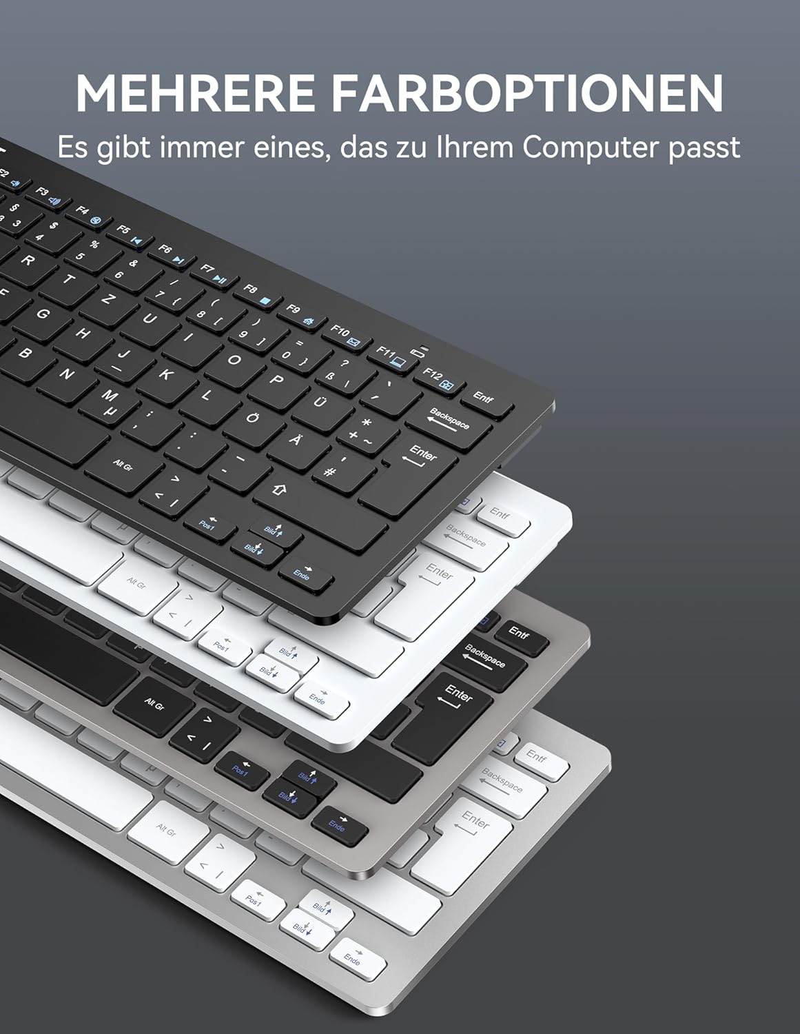 TECKNET Slim Kabellose Tastatur, Deutsches Layout, 78 Tasten Mini Wireless Tastatur mit Nano USB Emp
