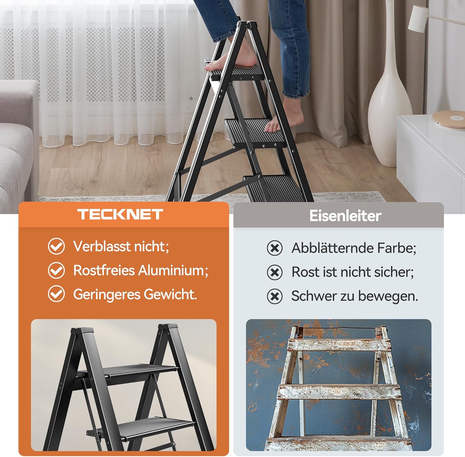 - 【36 Monate Kundendienst】 Die TECKNET Trittleiter verfügt über eine 36-monatige Garantie (nur bei Registrierung) und einen freundlichen Kundenservice. Sollten Sie auf Probleme stossen, können Sie sich an unseren Kundenservice wenden.