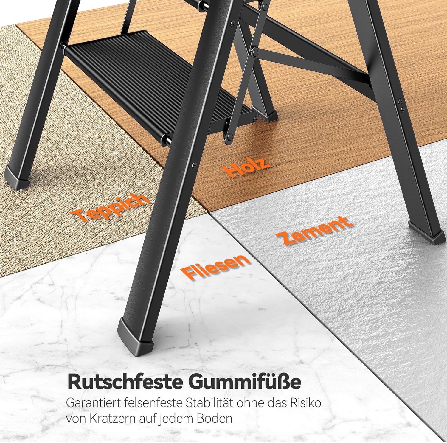 - 【Leicht und tragbar】 Die Trittleiter 3 Stufen Klappbar ist einfach zu montieren und die Schwarz Tritthocker lässt sich in nur wenigen Sekunden zusammenklappen. Im zusammengeklappten Zustand ist es platzsparend und auch beim Ausgehen sehr bequem zu