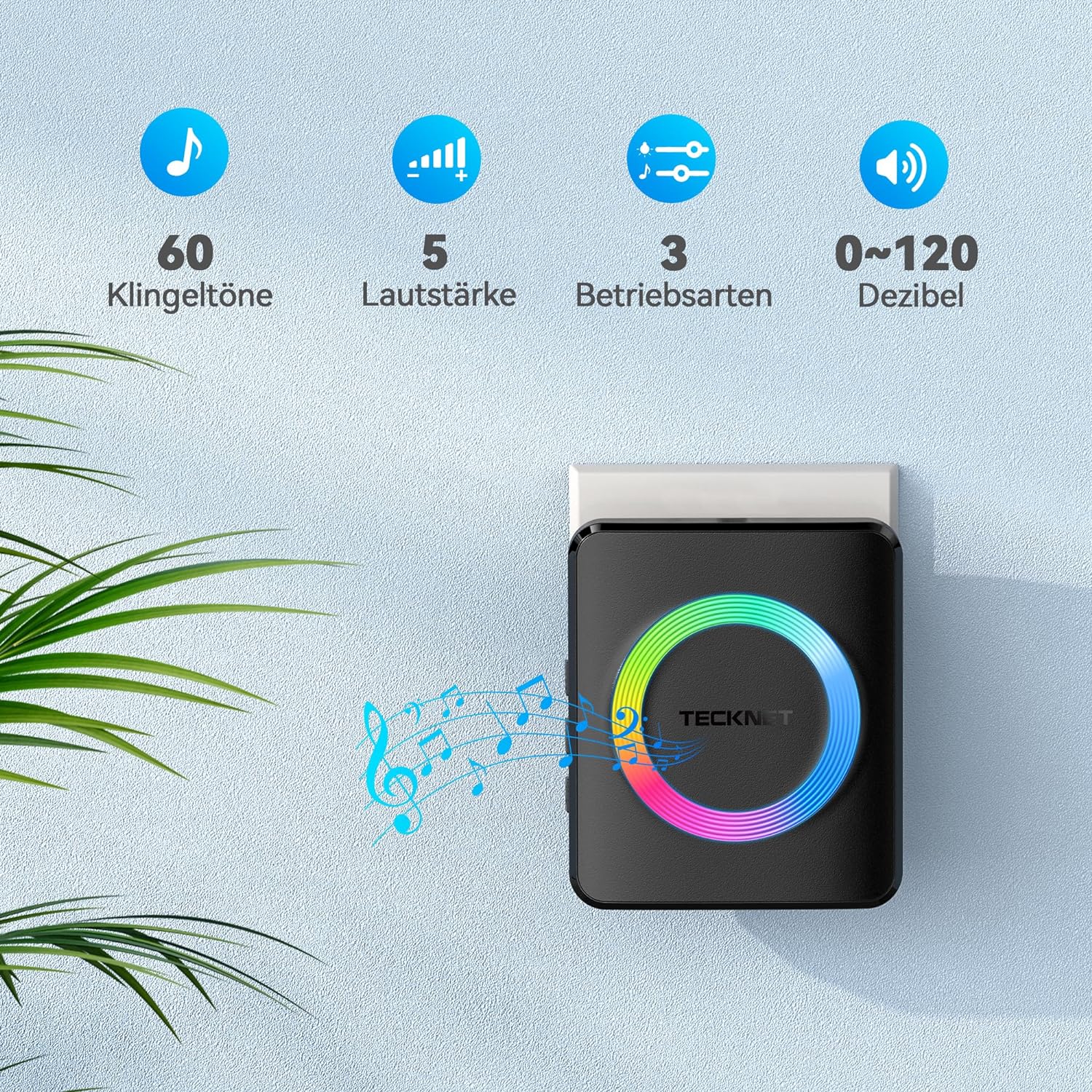- 【5 Tonstufen & 60 Verschidene klngeltone】Der klingel funk bietet satten und klaren Klang. Es gibt 5 Tonstufen zur Auswahl verschiedener Töne(0 dB bis 120dB). Die Klingel verfügt über 60 Glocken Ihren Bedürfnissen gerecht zu werden.drücken Sie