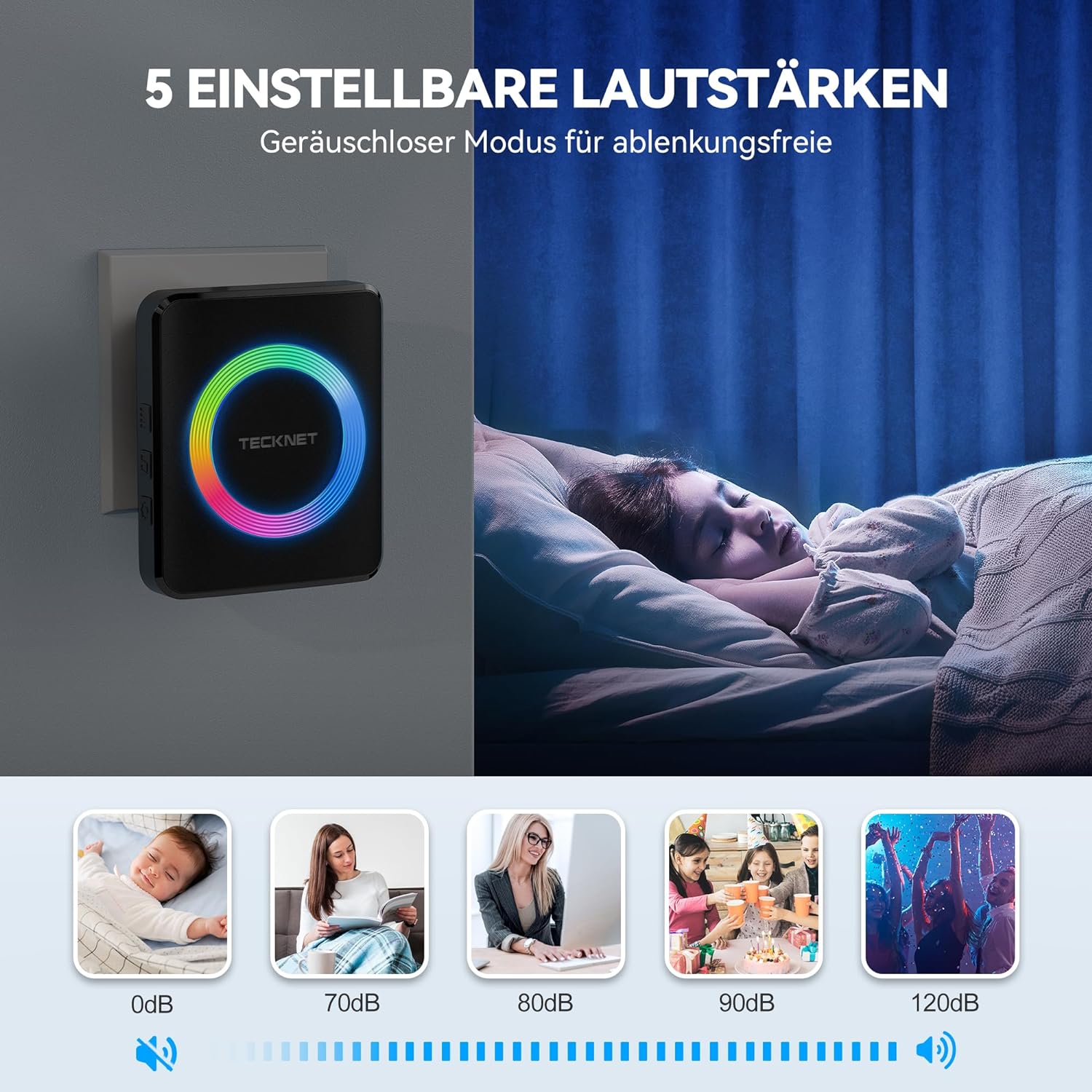 - 【3 Klingelmodi】 Stummschalten (nur das Licht der LED), klingeln. led+Kingeln. Wenn sich jemand ausruht, können Sie den lautlosen Modus mit blinkendem LED-Licht wählen, und Sie können den Klingelmodus oder den gleichzeitigen Klingel- und