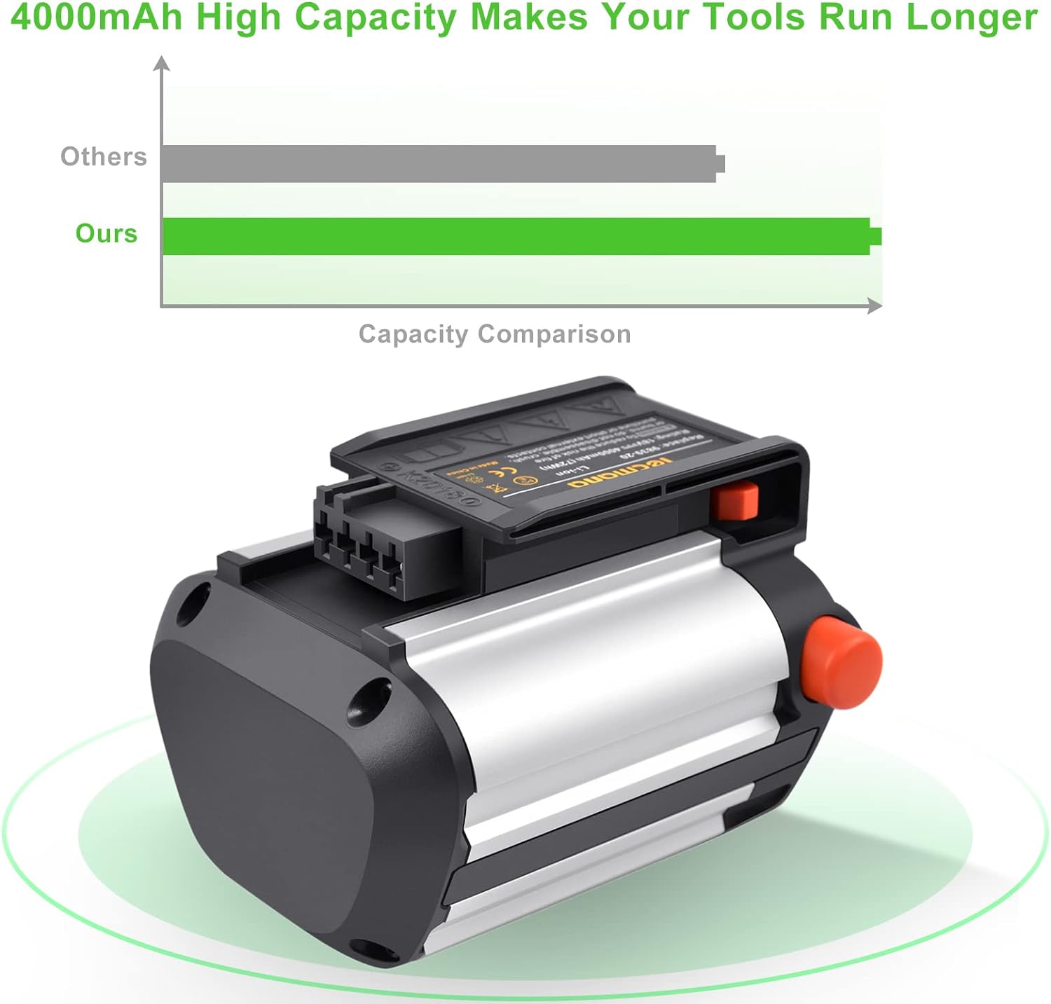 - Kapazität: 4000mAh, Spannung: 18V, Energie-Leistung: 72Wh, Zell-Typ: Lithium-Ionen, Rechargeable