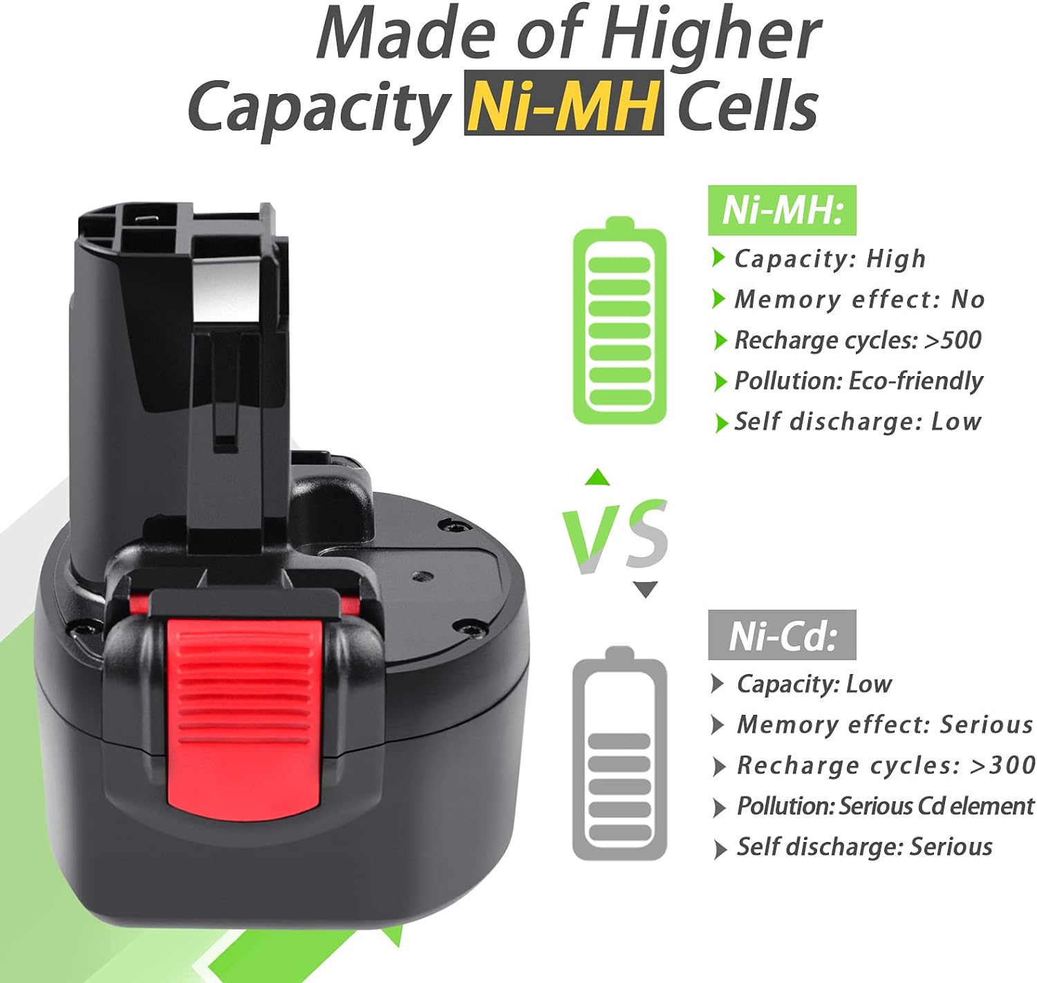 - Der Ni-MH-Akku ist gut mit Werkzeugen wie dem Original-Ni-Cd-Akku kompatibel und kann mit dem Original-Ni-Cd- oder Ni-MH-Ladegerät aufgeladen werden
