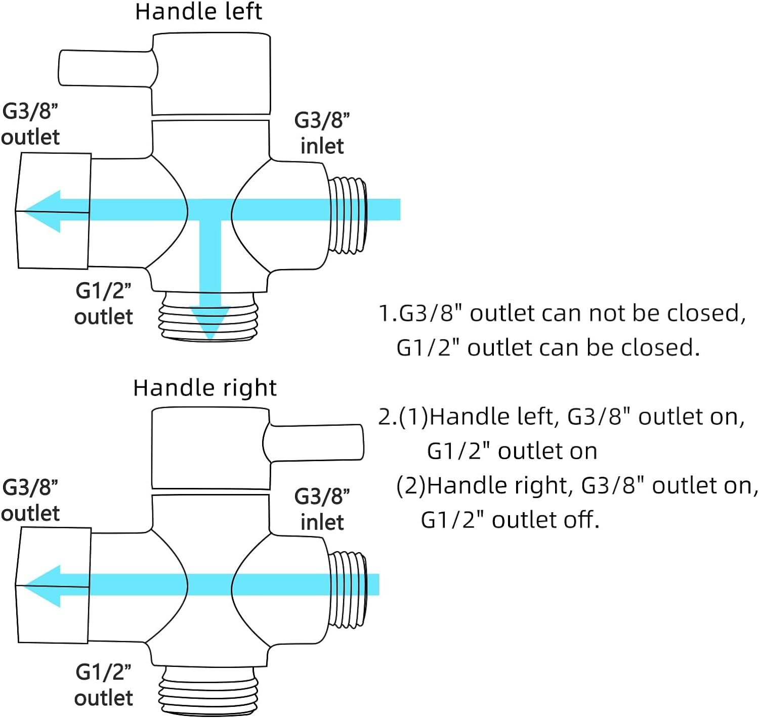 - Bidet Ventil 3/8 ": Das Absperrventil ermöglicht das Abschalten oder Einstellen des Wasserflusses in den Duschkopf